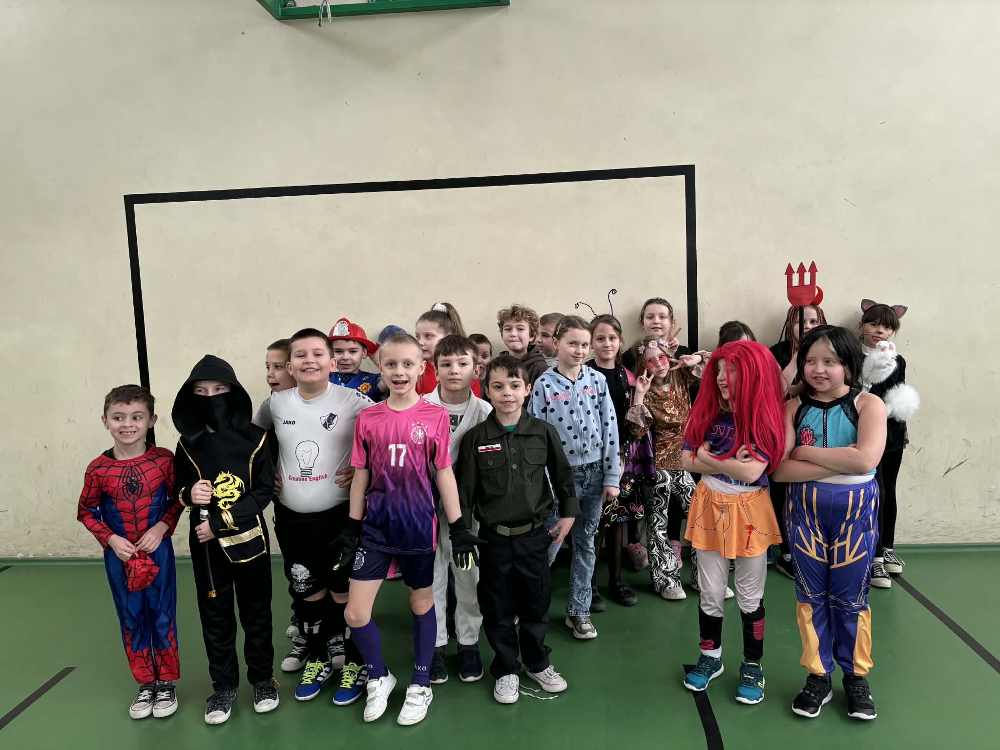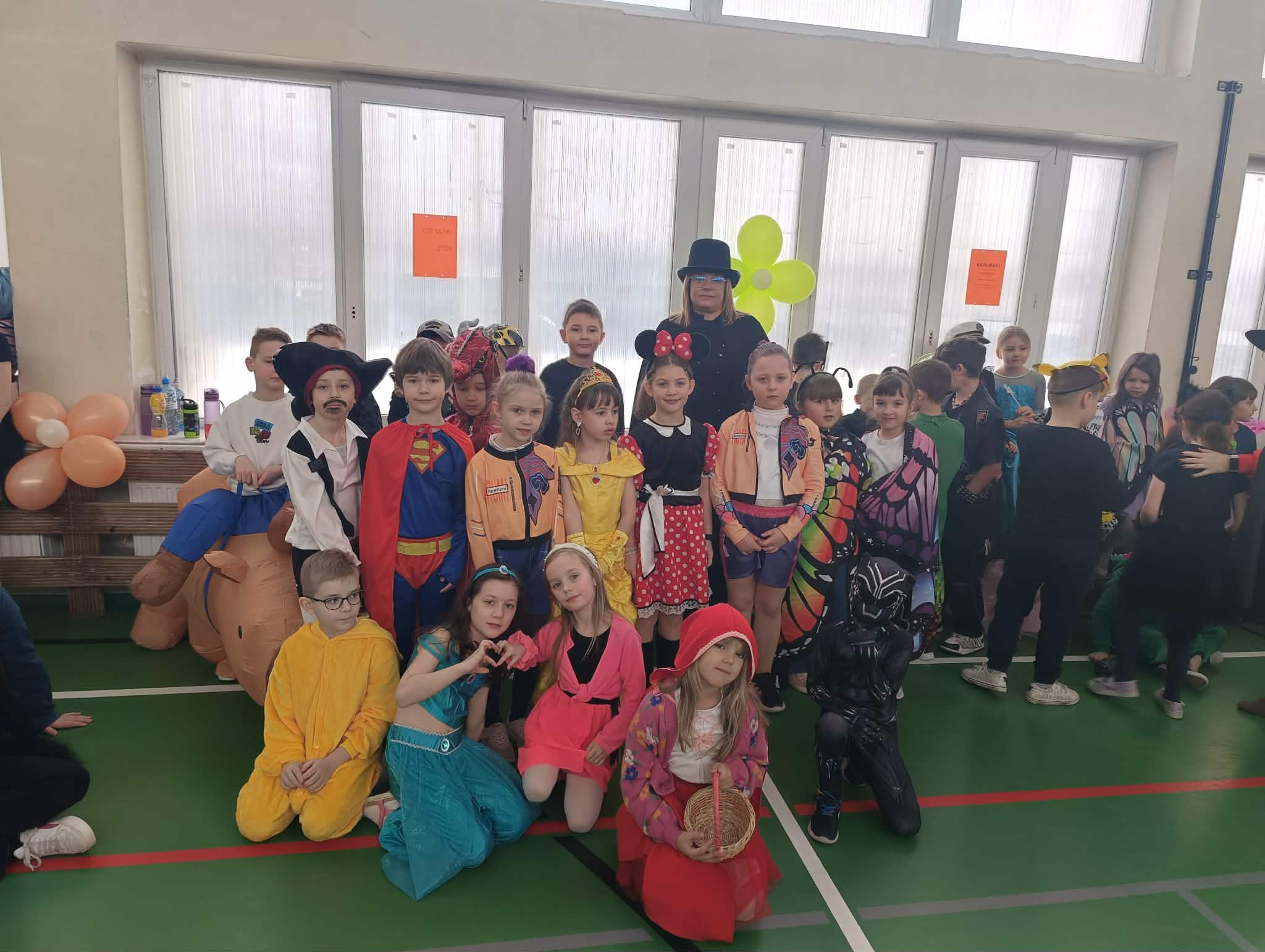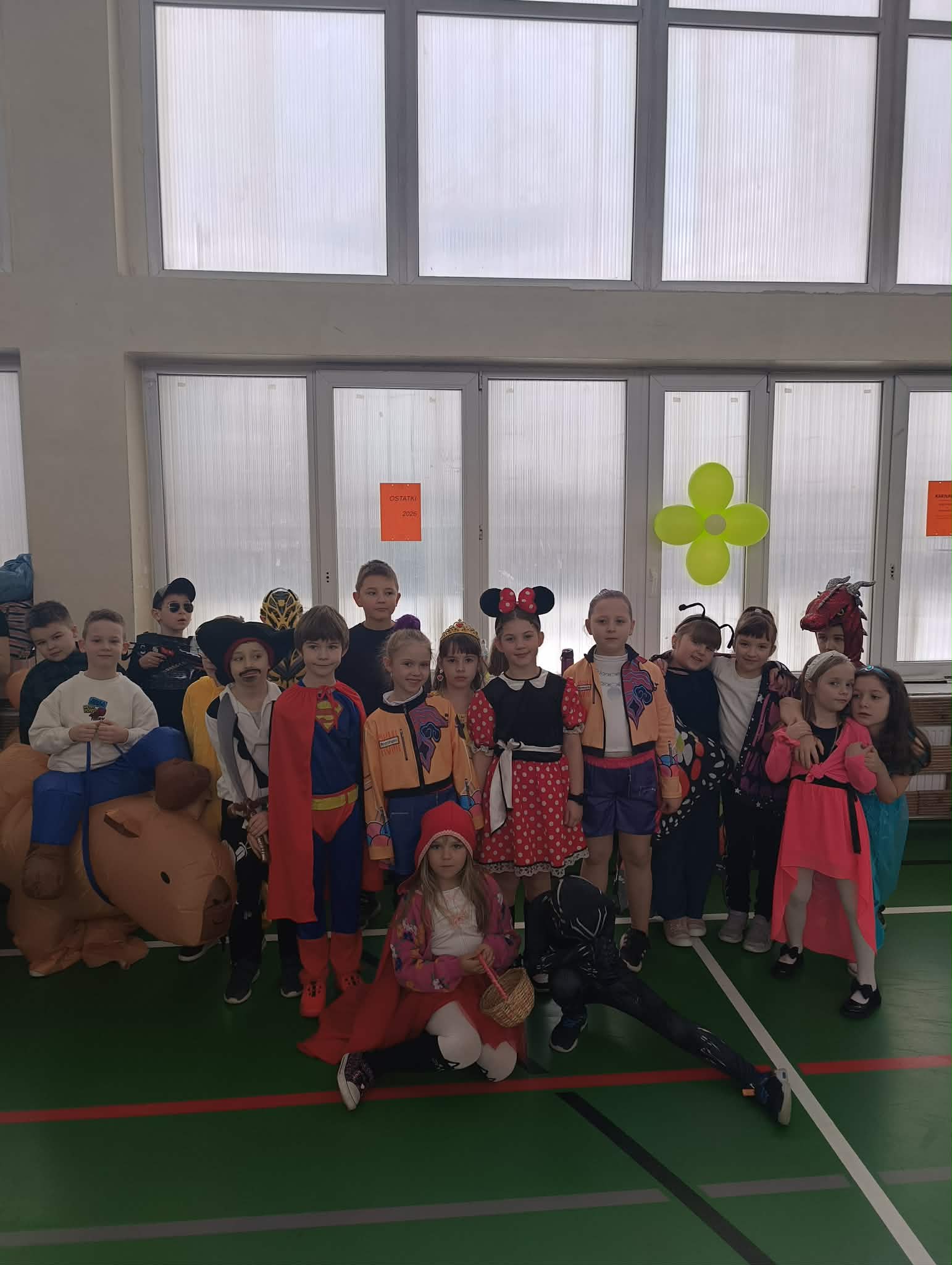 W naszej szkole odbył się radosny bal karnawałowy dla uczniów klas 1–3. Sala wypełniła się barwnymi i pomysłowymi strojami – dzieci wcieliły się w bohaterów bajek, postacie filmowe, zwierzęta oraz różnorodne fantastyczne role. Wspólna zabawa przy muzyce stworzyła wyjątkową atmosferę, pełną śmiechu i pozytywnej energii.