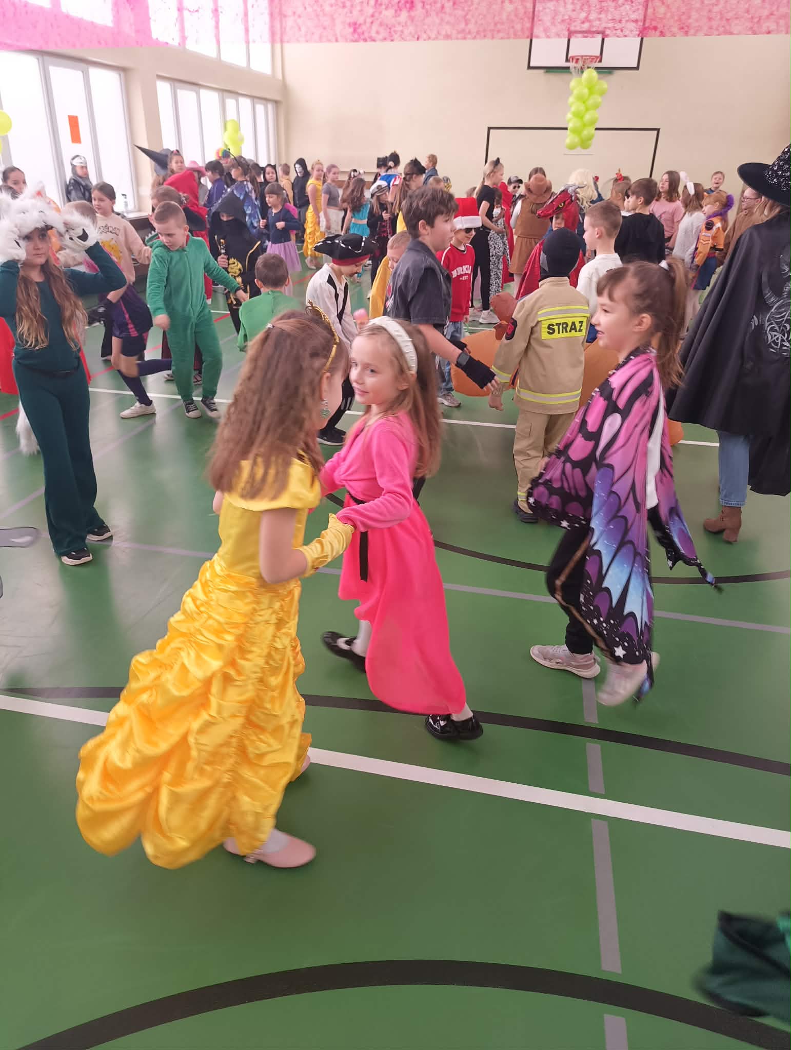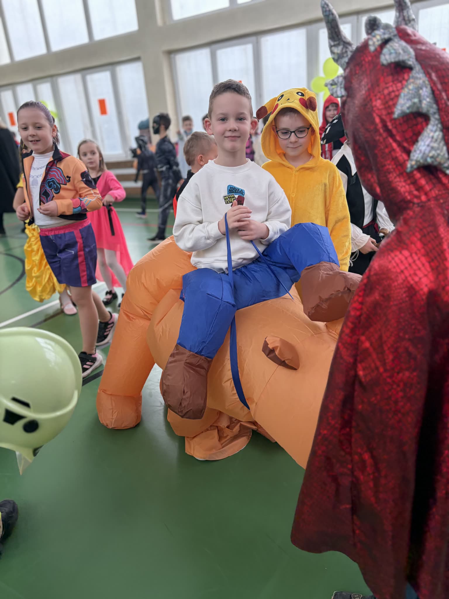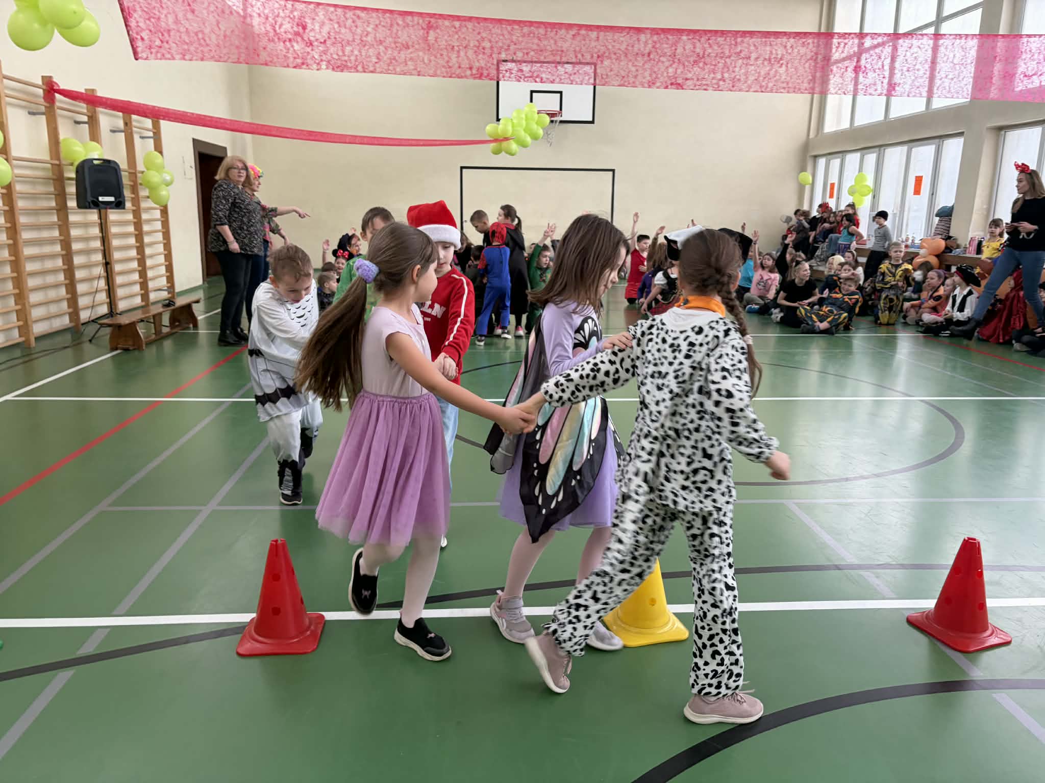 W naszej szkole odbył się radosny bal karnawałowy dla uczniów klas 1–3. Sala wypełniła się barwnymi i pomysłowymi strojami – dzieci wcieliły się w bohaterów bajek, postacie filmowe, zwierzęta oraz różnorodne fantastyczne role. Wspólna zabawa przy muzyce stworzyła wyjątkową atmosferę, pełną śmiechu i pozytywnej energii.
