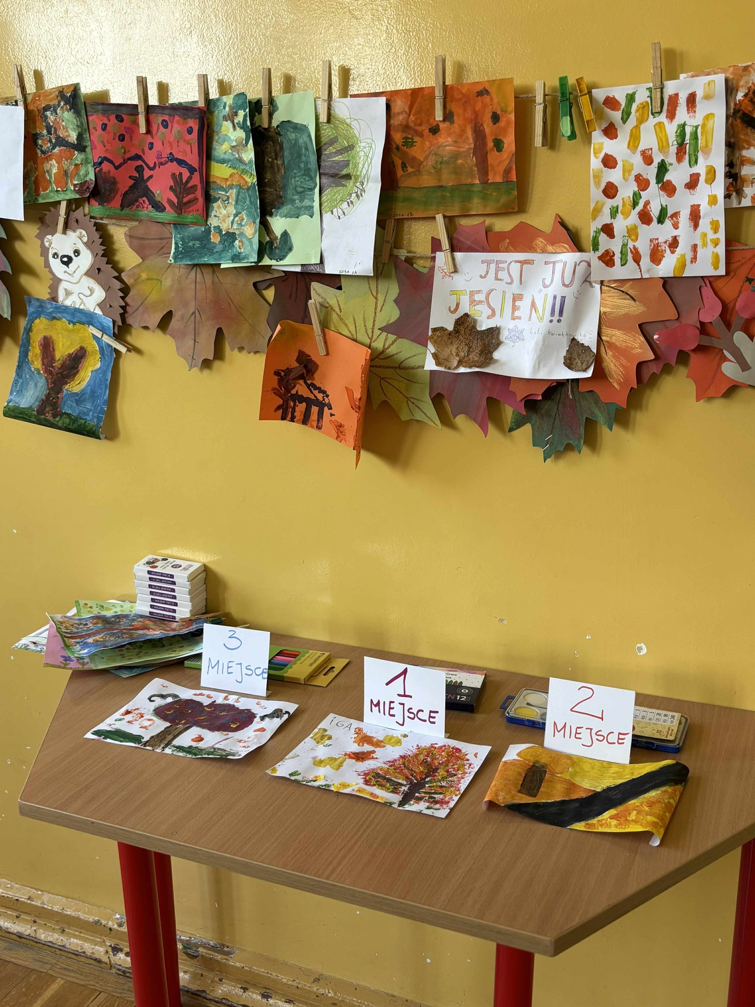 Dziś w naszej świetlicy szkolnej odbyło się ogłoszenie wyników konkursu plastycznego. Podczas głosowania dzieci wybrały trzy najpiękniejsze prace, które znalazły się na podium. Ponadto przyznano również wyróżnienia za pomysłowość, estetykę i oryginalne ujęcie jesiennego tematu.
