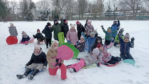Dzieci zjeżdżały po śniegu pojedynczo, w parach, a nawet w trójkach, prezentując przy tym całą gamę kreatywnych stylów zjazdów – tyłem, bokiem, „na śledzia” i na wiele innych, pomysłowych sposobów. Towarzyszył im śmiech, radość i doskonała zabawa.