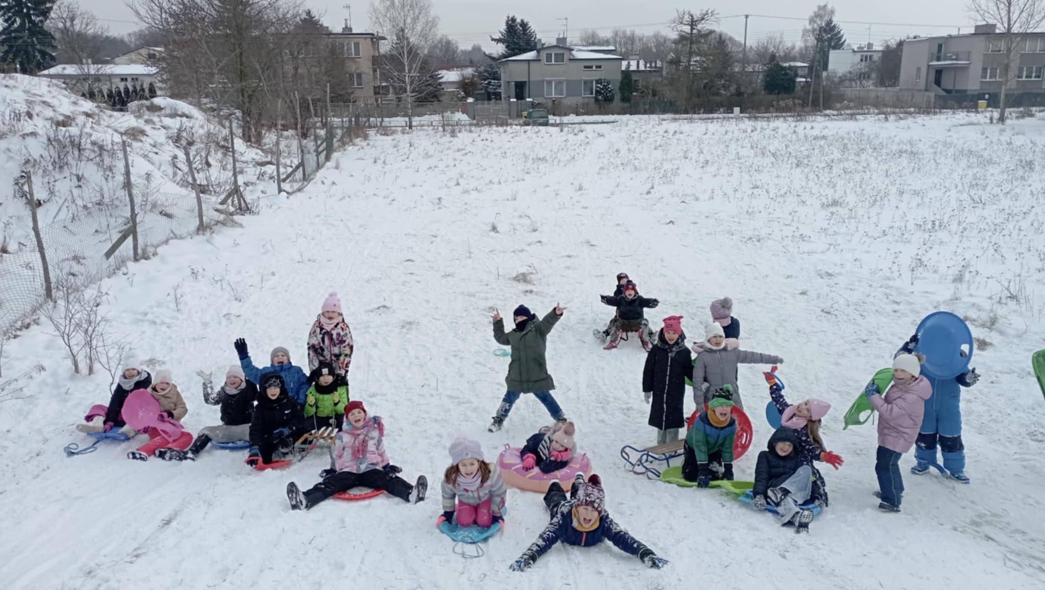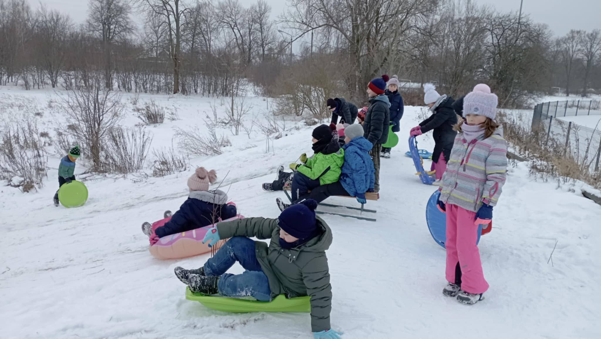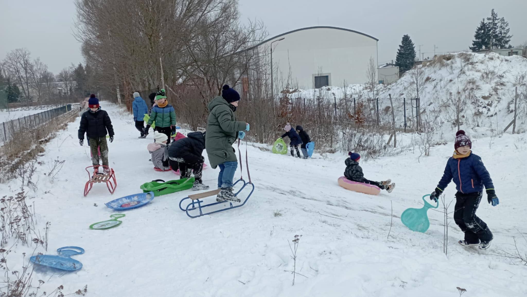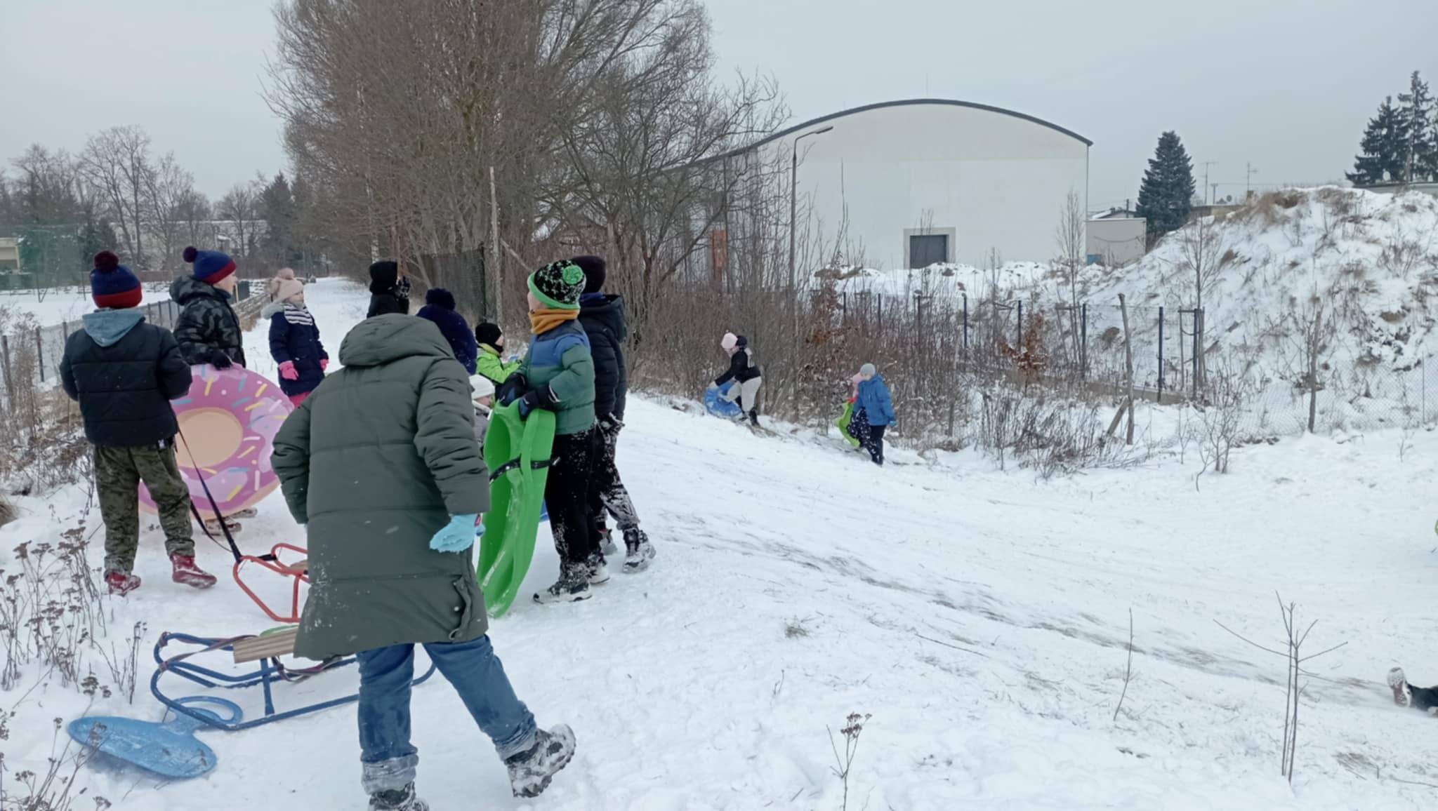 We wtorek, 13 stycznia, uczniowie klasy 2b skorzystali z pięknej, zimowej aury i wybrali się na pobliską górkę przy boisku PTC. Wyposażeni w kolorowe "jabłuszka", sanki i pontony, z entuzjazmem oddali się zimowym harcom.