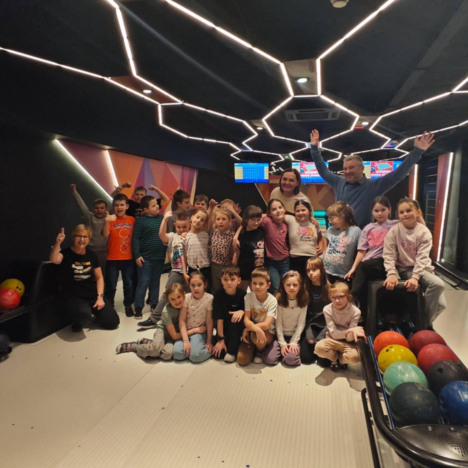 Dzieci podzieliły się na trzy ośmioosobowe drużyny i rozpoczęły rywalizację na torach. Nie zabrakło celnych rzutów, strike’ów oraz emocjonujących pojedynków punktowych. Uczniowie z zaangażowaniem uczestniczyli w rozgrywkach, wzajemnie się dopingowali i gratulowali sobie udanych prób.