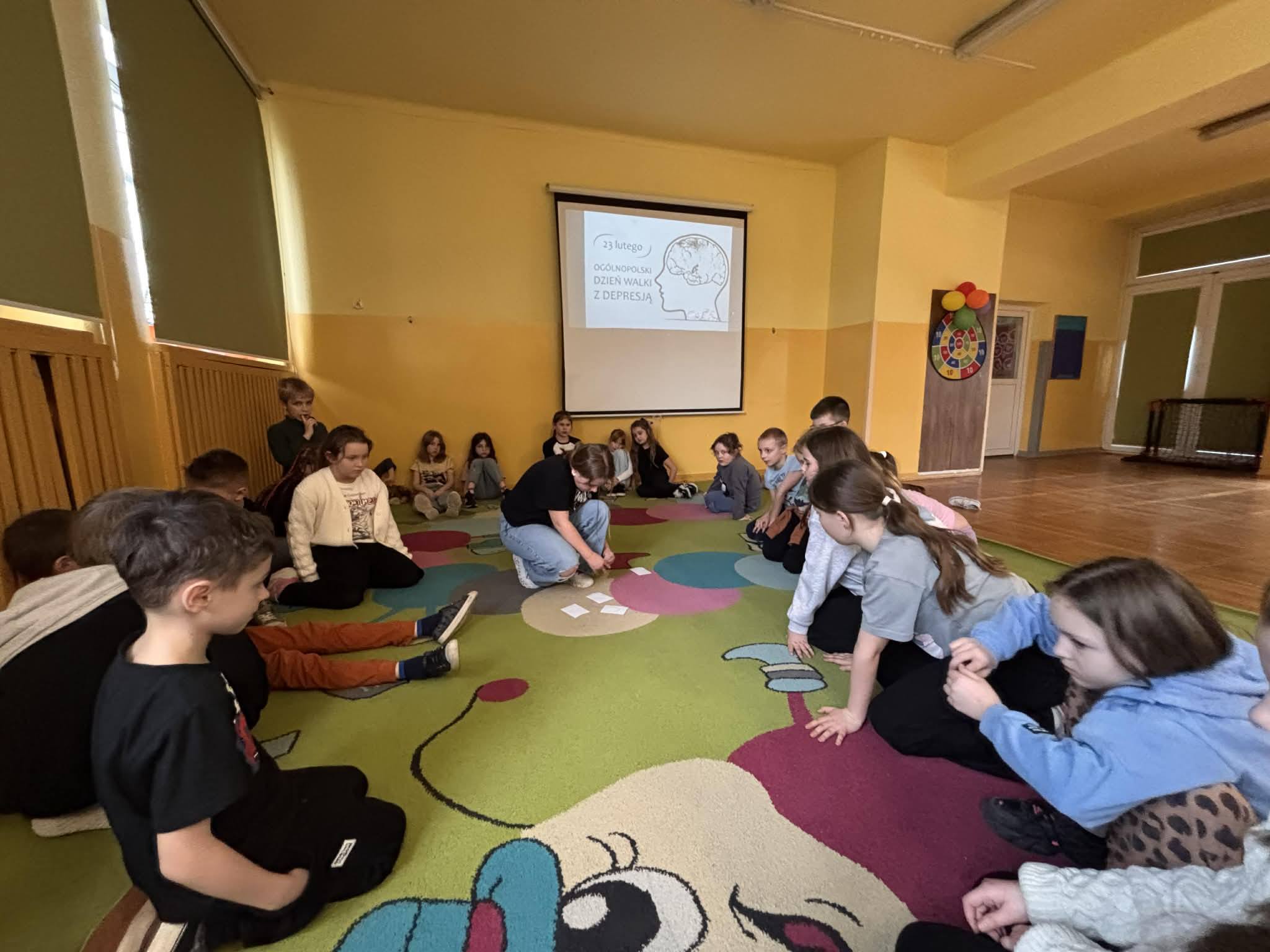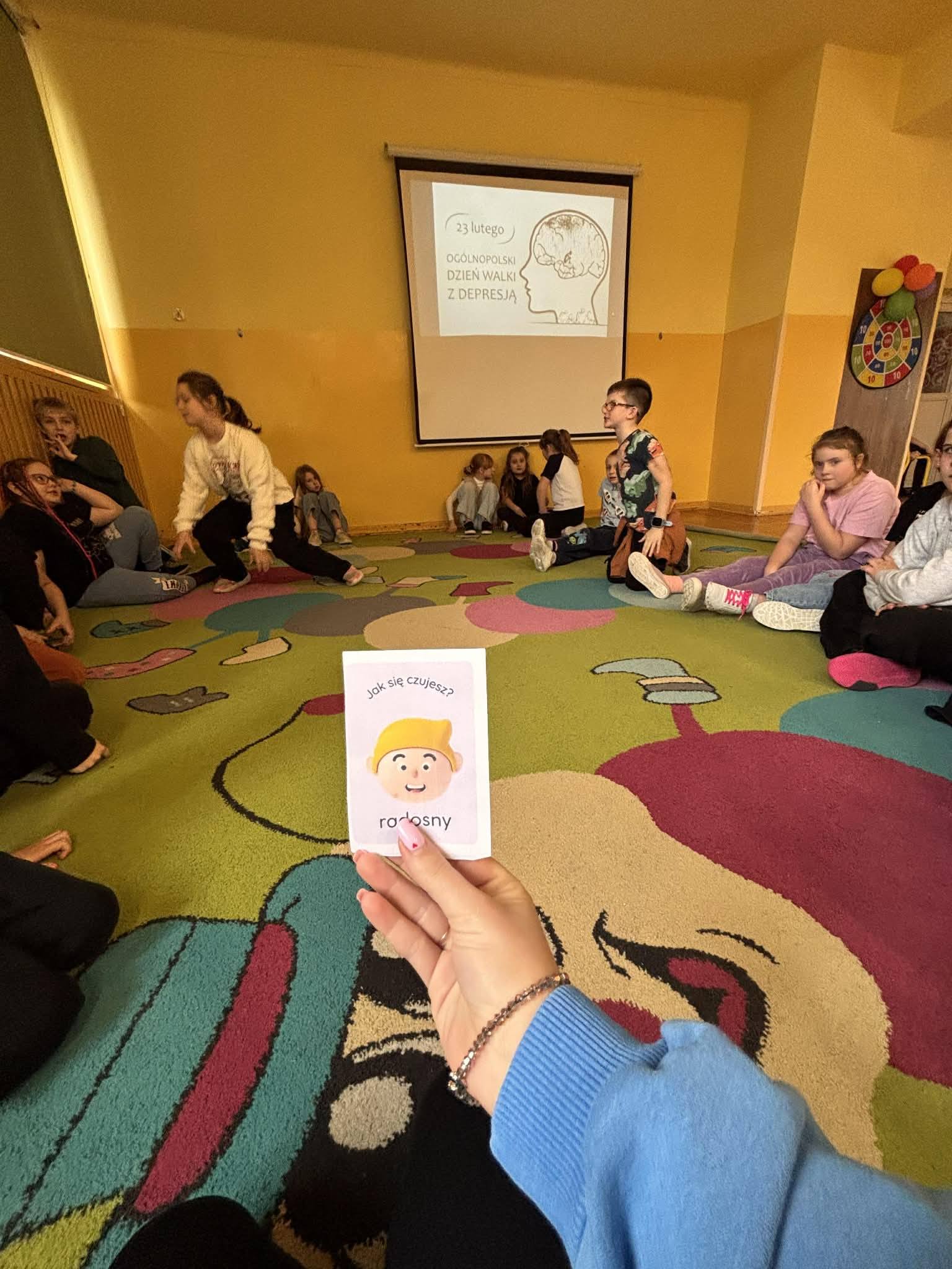 Dzieci pracowały w grupach, analizowały przykładowe sytuacje i wspólnie zastanawiały się, jak można pomóc osobie, która czuje się źle. Były to bardzo dojrzałe i empatyczne rozmowy. Na zakończenie zajęć wskazaliśmy miejsca, w których można szukać wsparcia, oraz podkreśliliśmy, jak ważne jest mówienie o swoich emocjach i problemach. Uczniowie dowiedzieli się również, że proszenie o pomoc jest oznaką odwagi, a nie słabości.