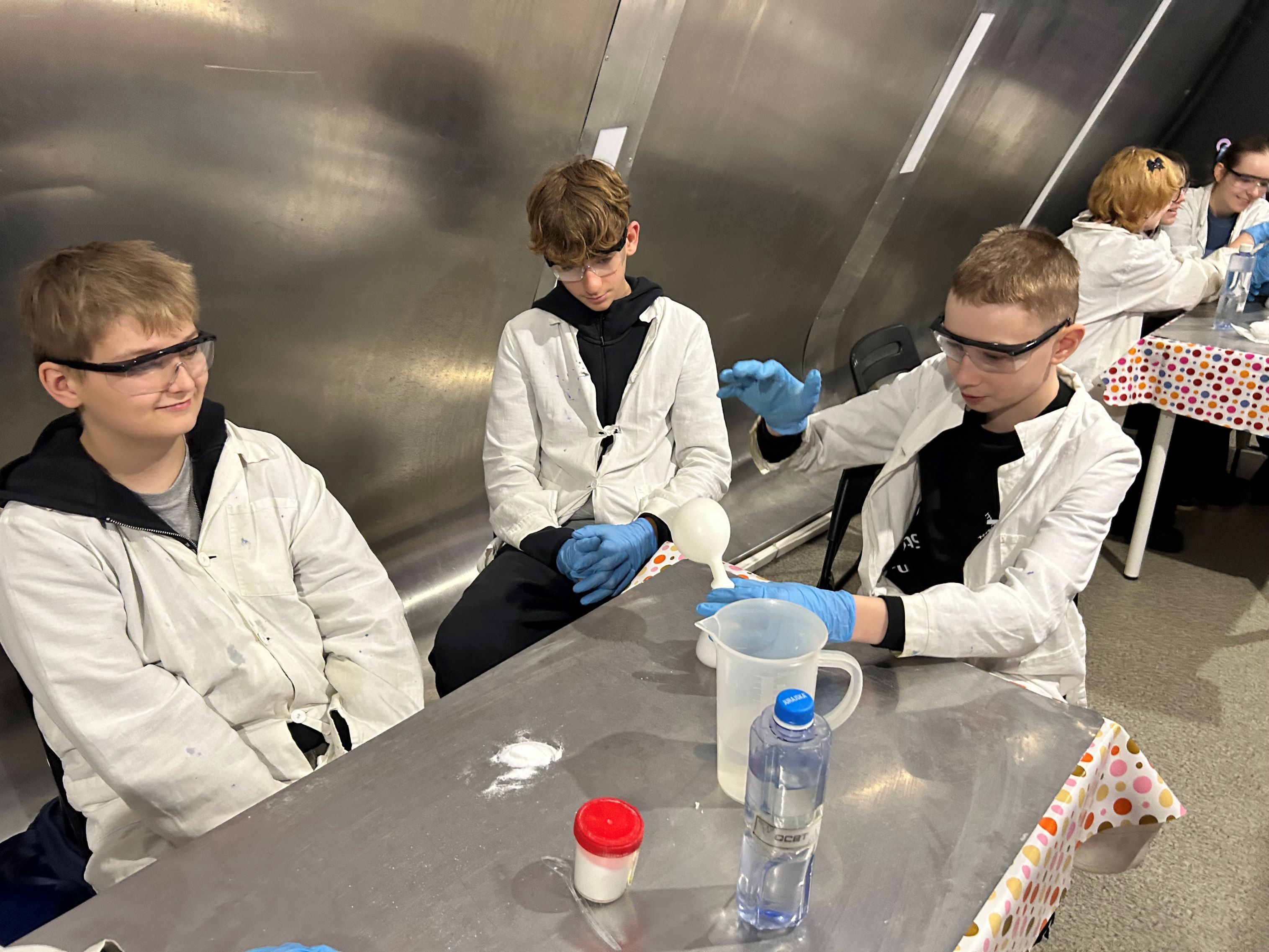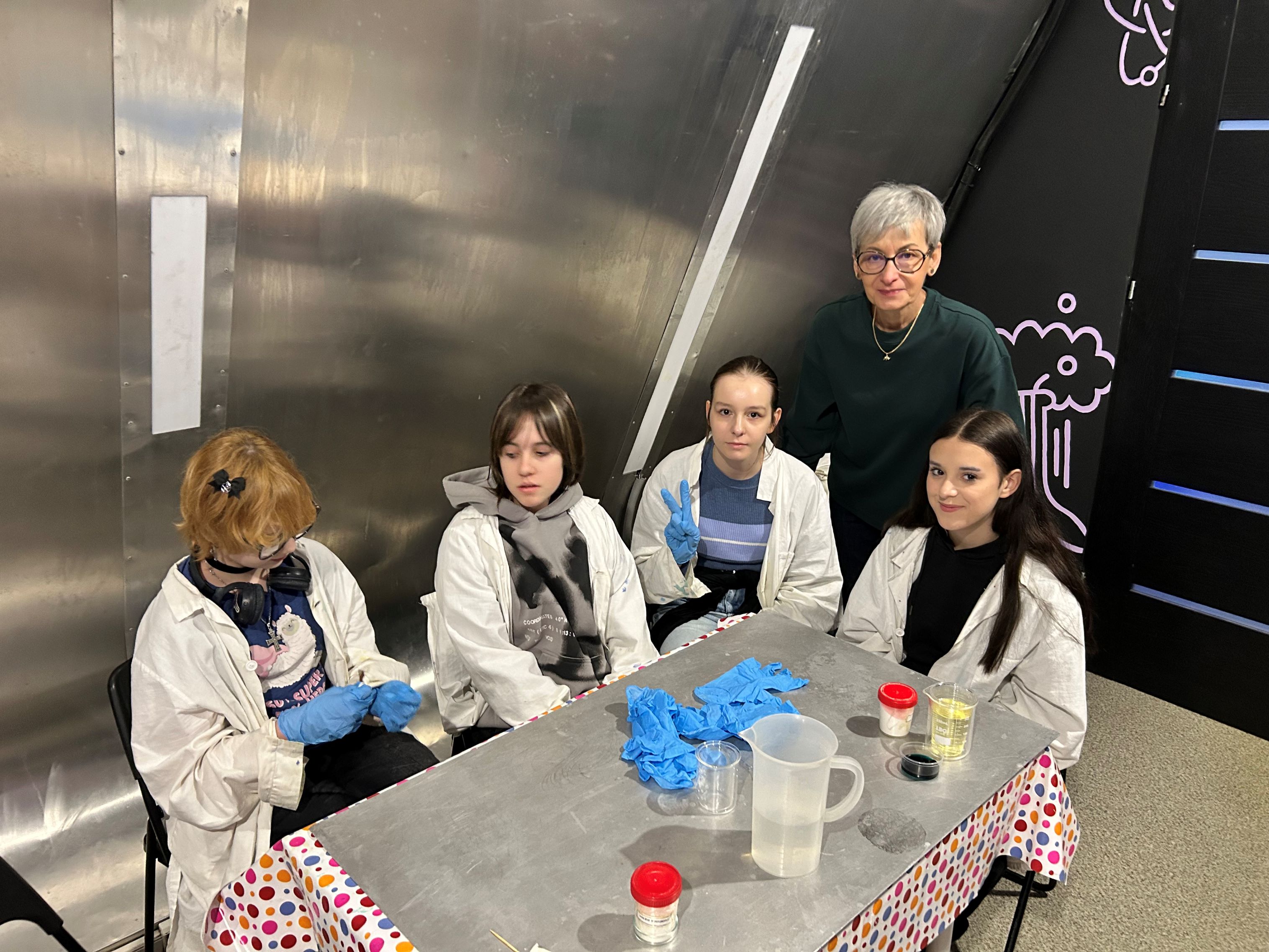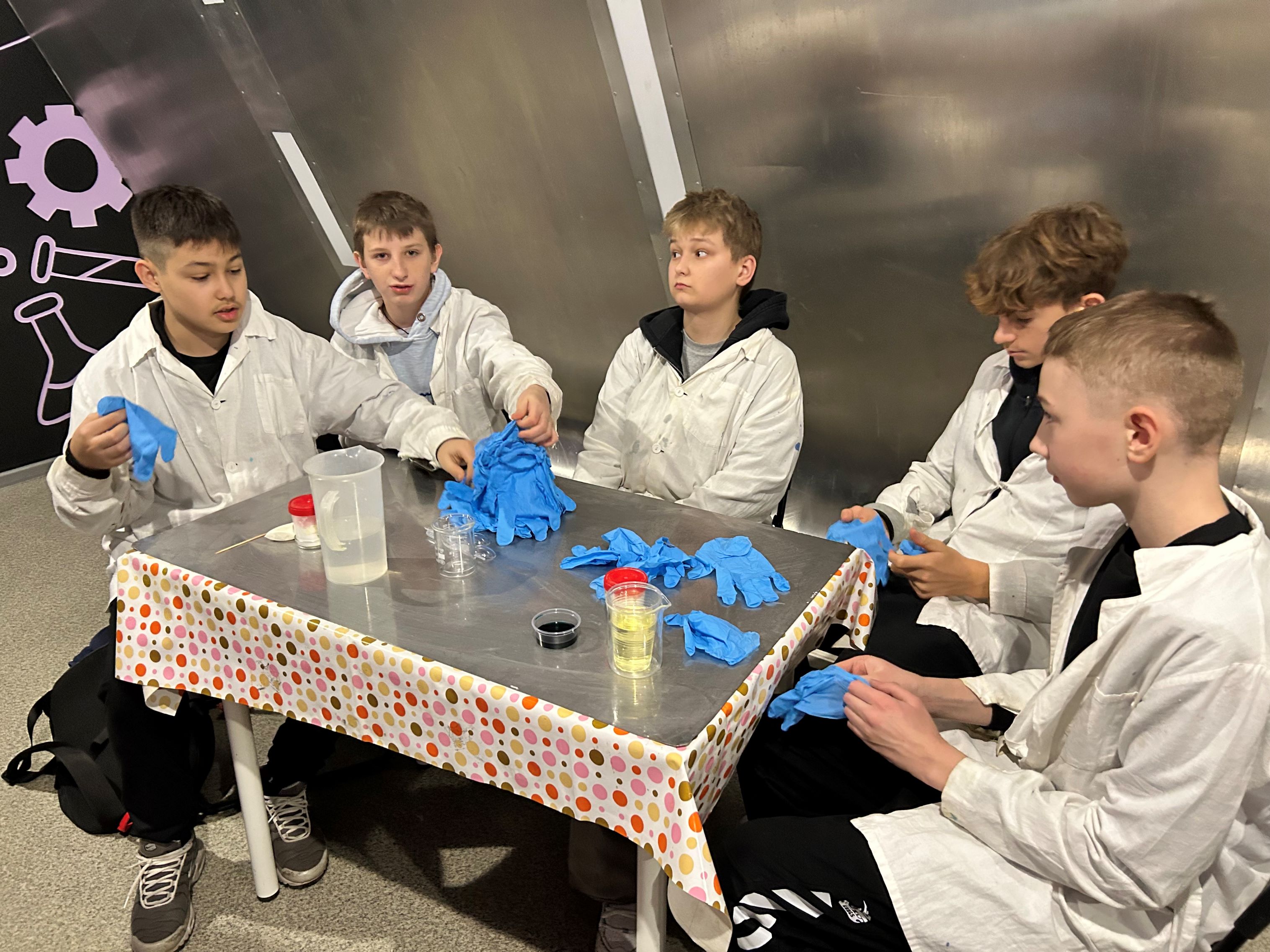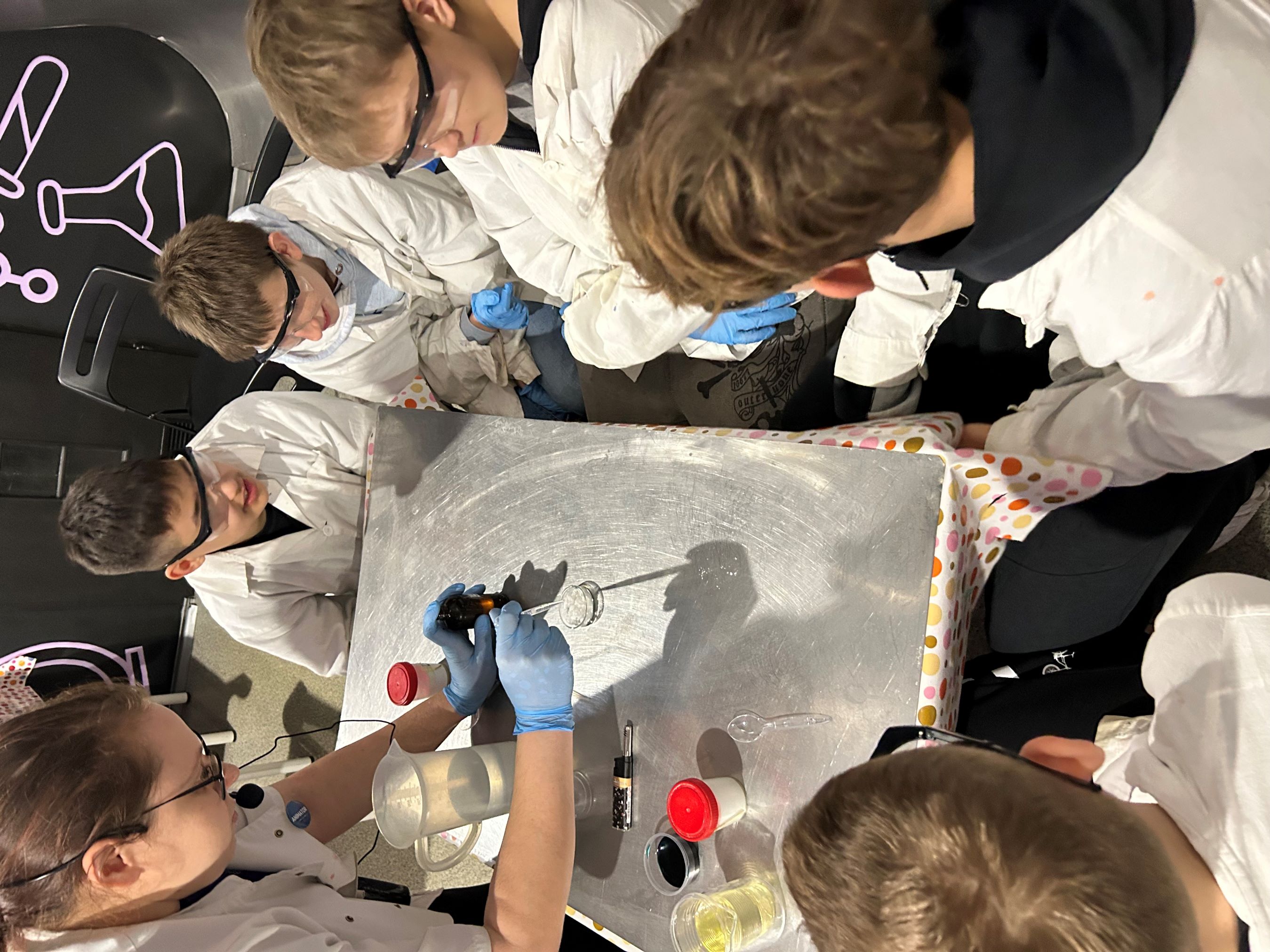 Pierwszą część wyjazdu stanowiły zajęcia edukacyjne w Experymentarium – 45-minutowe warsztaty pt. „Naukowy misz-masz”. Są to specjalnie opracowane spotkania dla grup szkolnych, ściśle powiązane z podstawą programową z chemii i fizyki. Podczas zajęć prowadzący wykorzystywali aktywizujące metody pracy: uczniowie nie tylko obserwowali pokaz, ale przede wszystkim samodzielnie wykonywali doświadczenia. Eksperymenty realizowano z użyciem prostych artykułów dostępnych w niemal każdej kuchni oraz profesjonalnych odczynników chemicznych. Dzięki temu siódmoklasiści mogli przekonać się, że nauka jest obecna w codziennym życiu, a jednocześnie poczuć się jak prawdziwi naukowcy, pracujący niczym w laboratorium. „Naukowy misz-masz” w atrakcyjny sposób łączył zabawę z nauką, rozwijając ciekawość świata, logiczne myślenie i zainteresowania przyrodnicze uczniów.