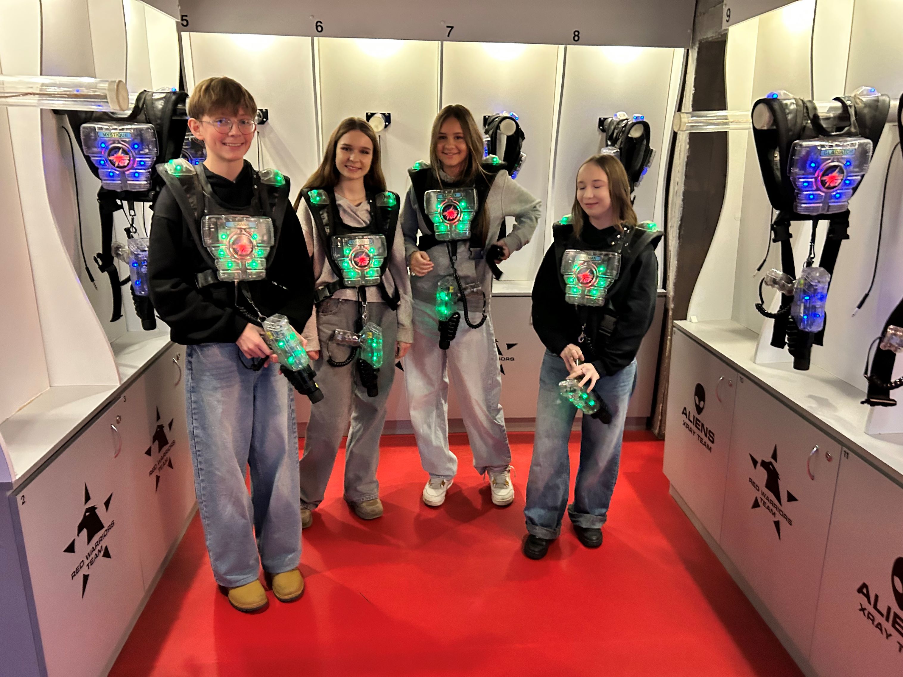 Druga część mikołajkowego spotkania odbyła się na arenie Laser Games. Uczniowie, wyposażeni w kamizelki z sensorami i pistolety laserowe, rywalizowali w labiryncie pełnym zakamarków, efektów świetlnych i specjalnie wytworzonej mgły. Gra wymagała zarówno sprawności fizycznej, jak i szybkiego podejmowania decyzji oraz współpracy w zespole, a celem było zdobycie jak największej liczby punktów.
