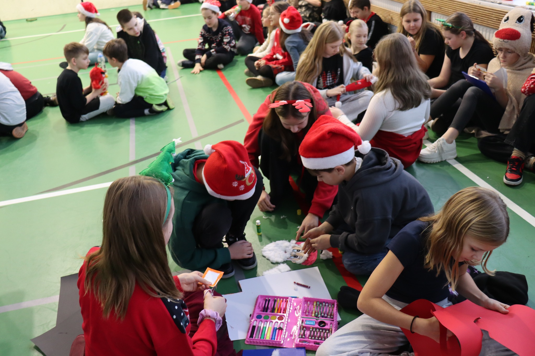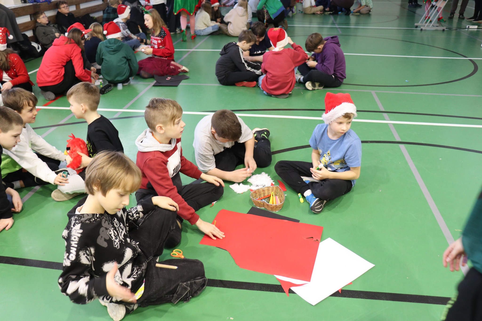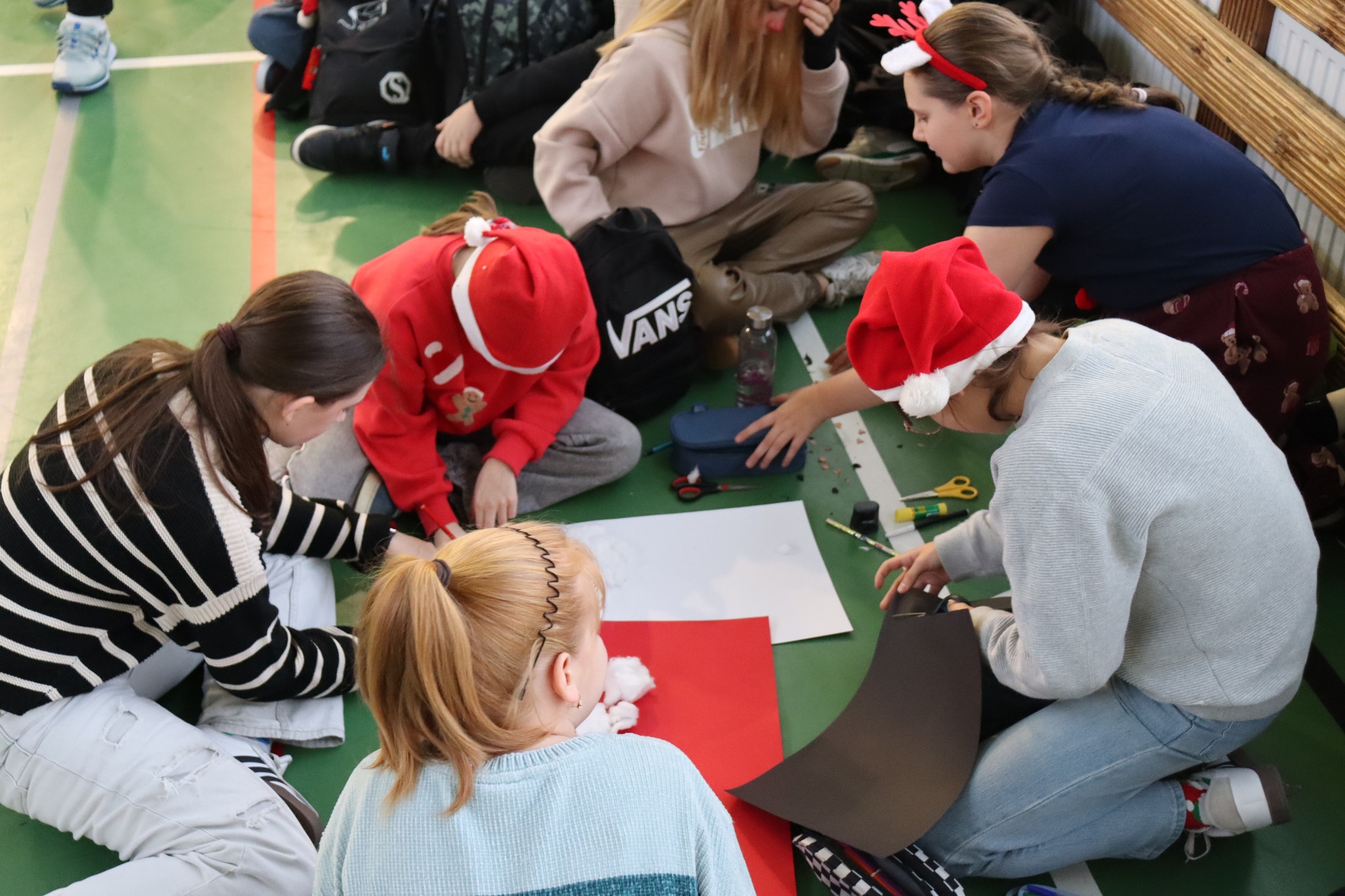 Każda klasa włączyła się także w działania kreatywne, wykonując Mikołaja z papieru oraz łańcuch ze słomek. Pomysłowość i zaangażowanie uczniów przerosły oczekiwania organizatorów. Najpiękniejsze prace zostały nagrodzone wigilijnym pakietem słodkości.