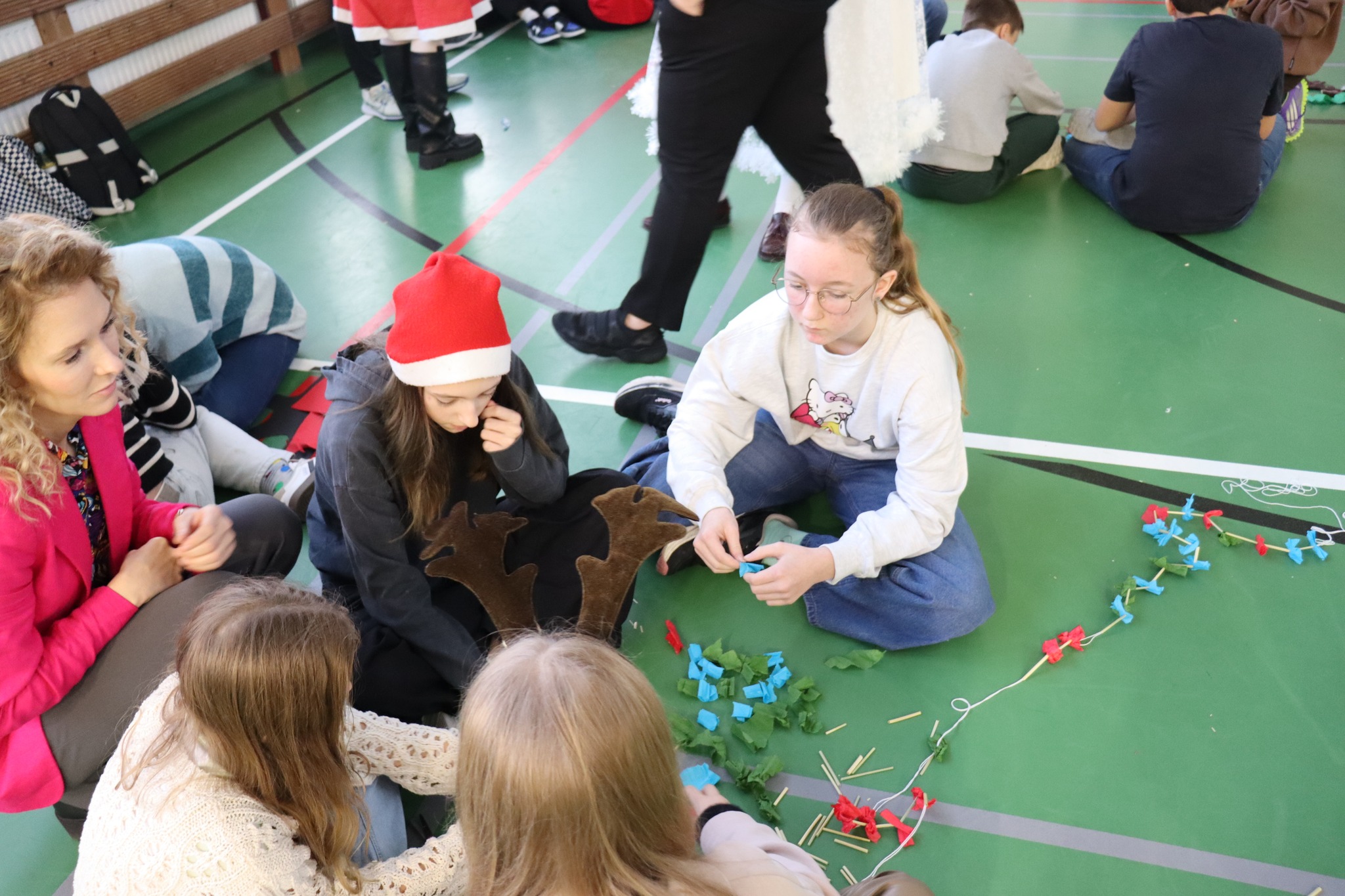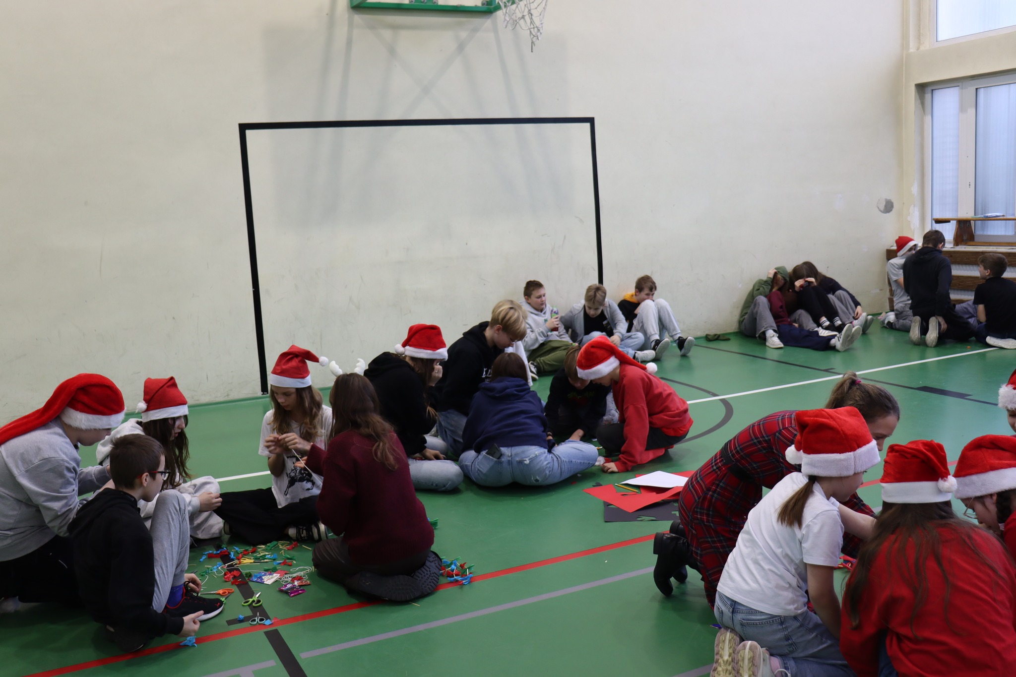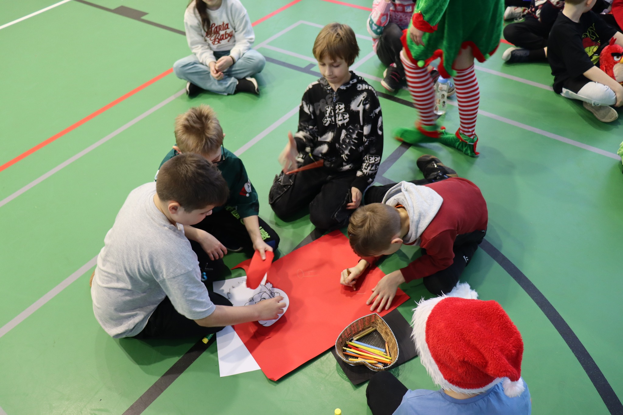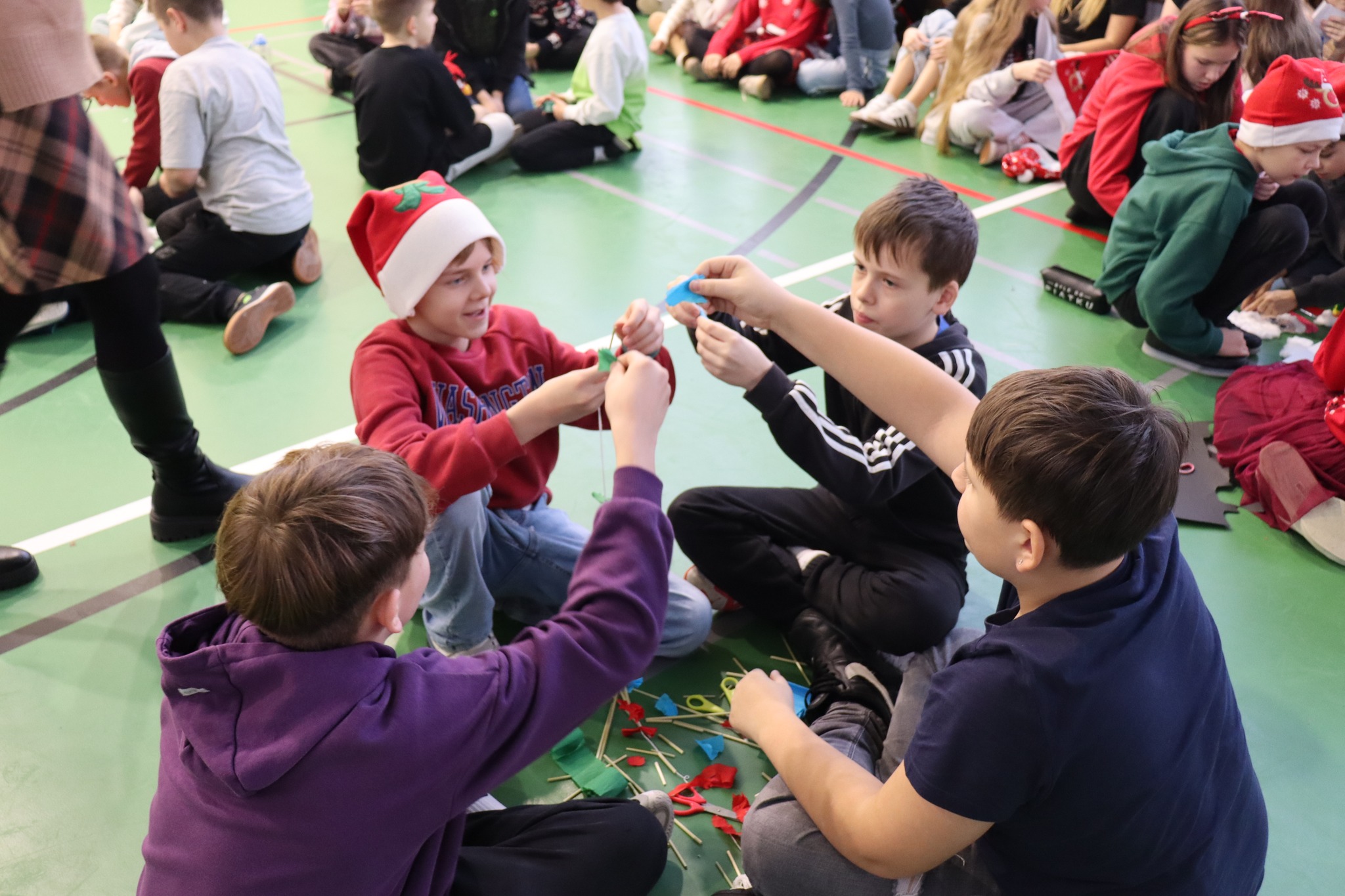 Każda klasa włączyła się także w działania kreatywne, wykonując Mikołaja z papieru oraz łańcuch ze słomek. Pomysłowość i zaangażowanie uczniów przerosły oczekiwania organizatorów. Najpiękniejsze prace zostały nagrodzone wigilijnym pakietem słodkości.