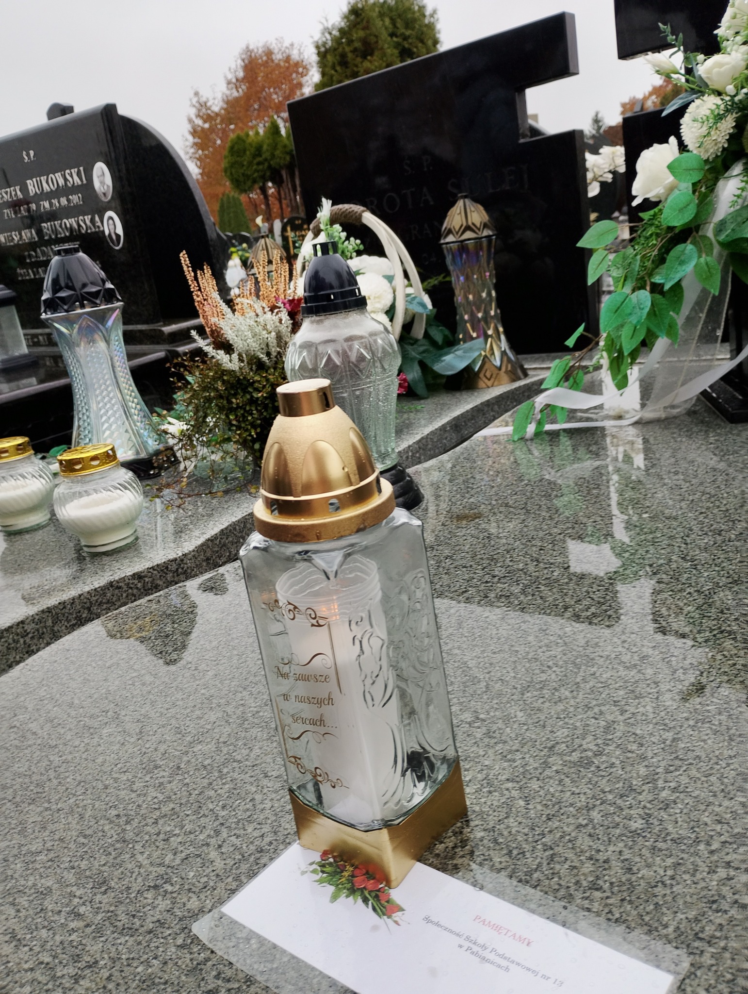 Pamięć o tradycji i historii zachowali także przedstawiciele Samorządu Uczniowskiego, którzy wraz z opiekunem, panią Renatą Goszcz, odwiedzili groby zmarłych nauczycieli i pracowników naszej szkoły. Zapalonym zniczem i chwilą ciszy uczcili tych, którzy przez lata z oddaniem kształtowali kolejne pokolenia uczniów.