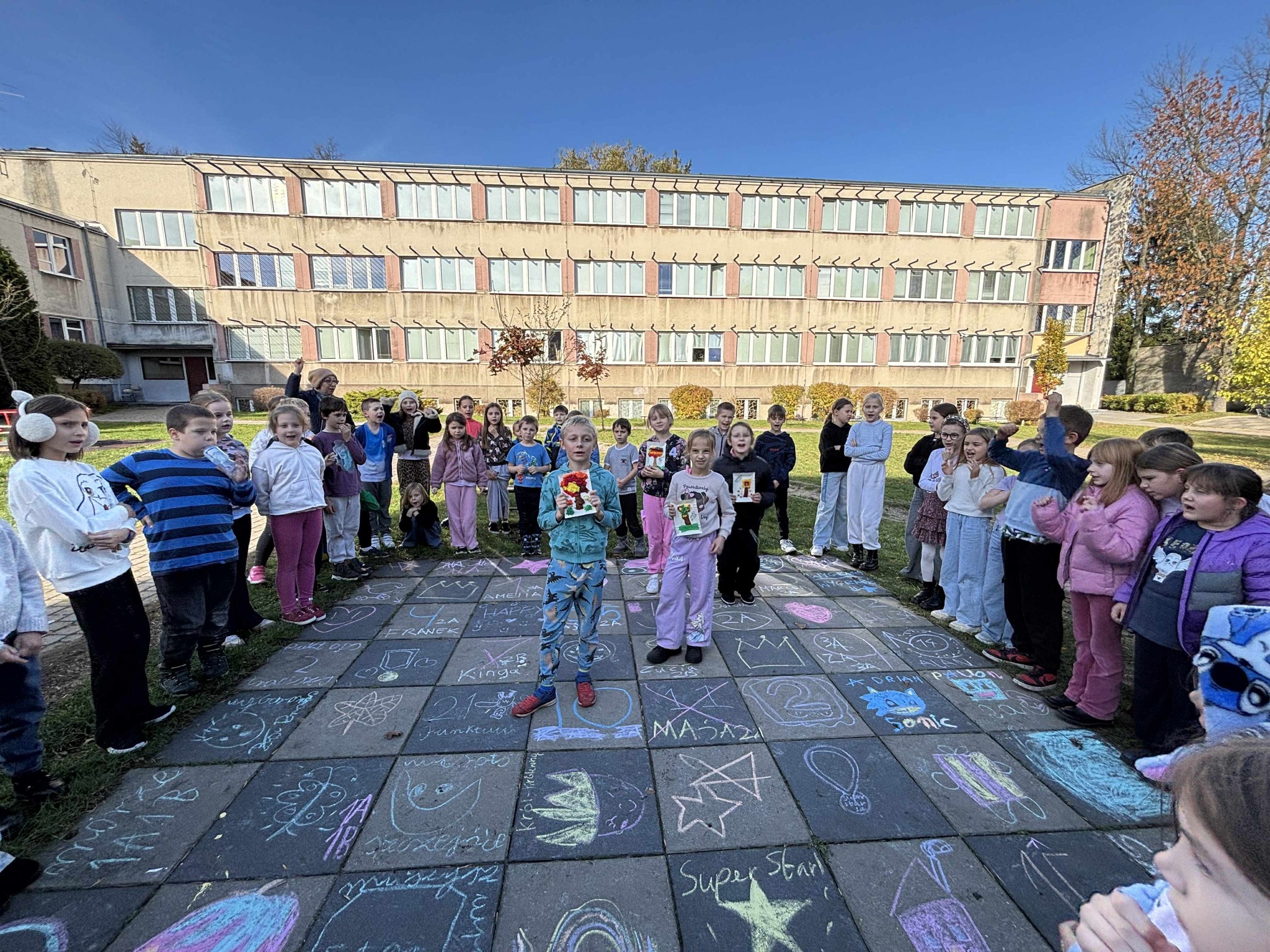 Kolejnym wydarzeniem była zabawa integracyjna dla uczniów klas II A i III B. Dzieci zmierzyły się w konkursie polegającym na jak najszybszym ułożeniu puzzli w zespołach. Po zakończeniu rywalizacji prace zostały przyklejone na kartki papieru, tworząc estetyczne kompozycje. Zwycięzcy otrzymali drobne nagrody.