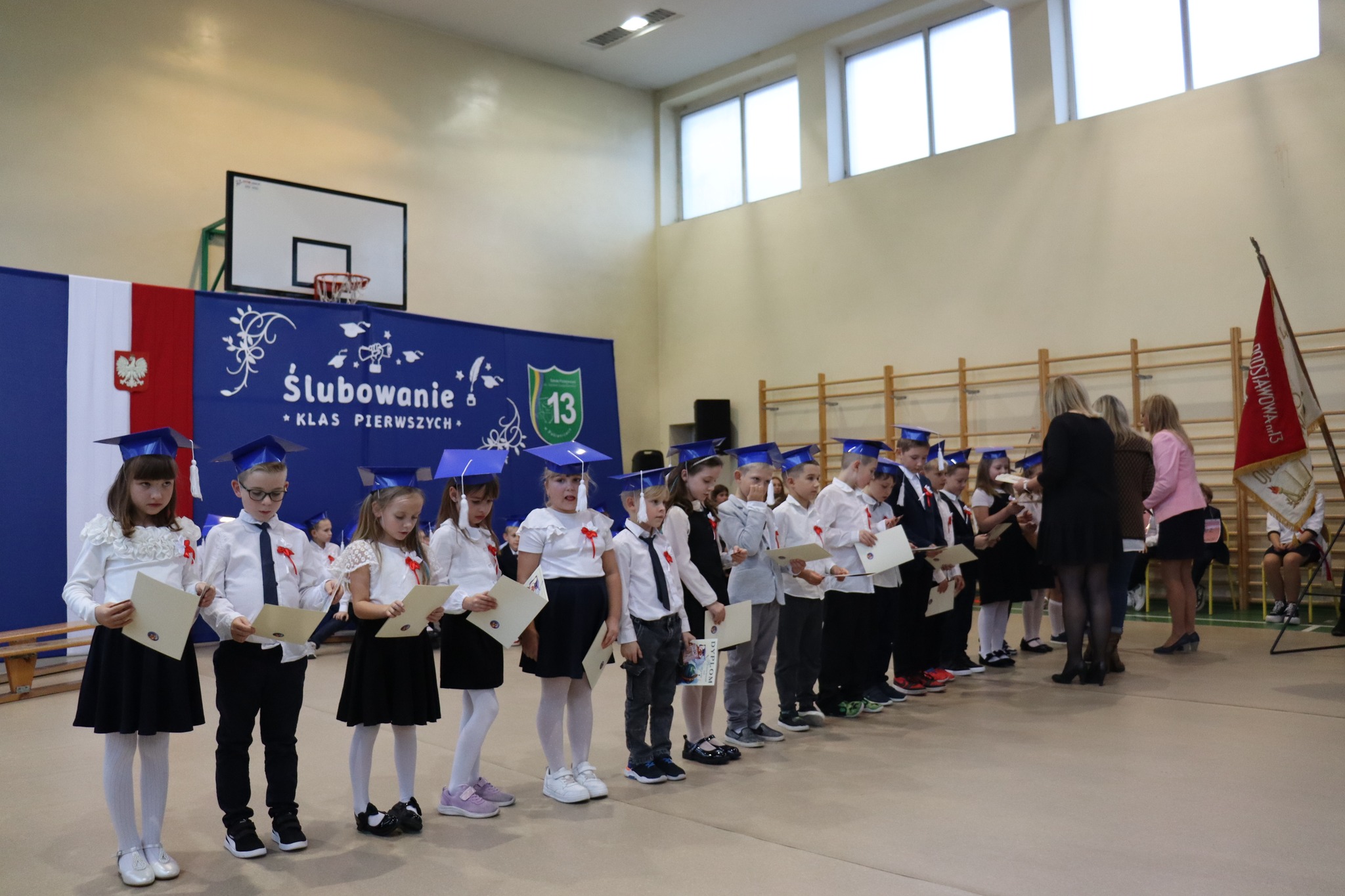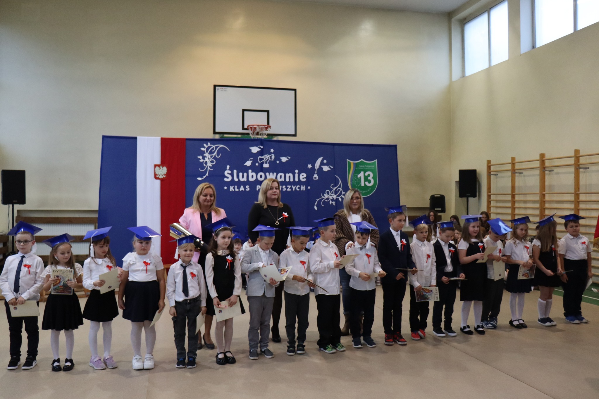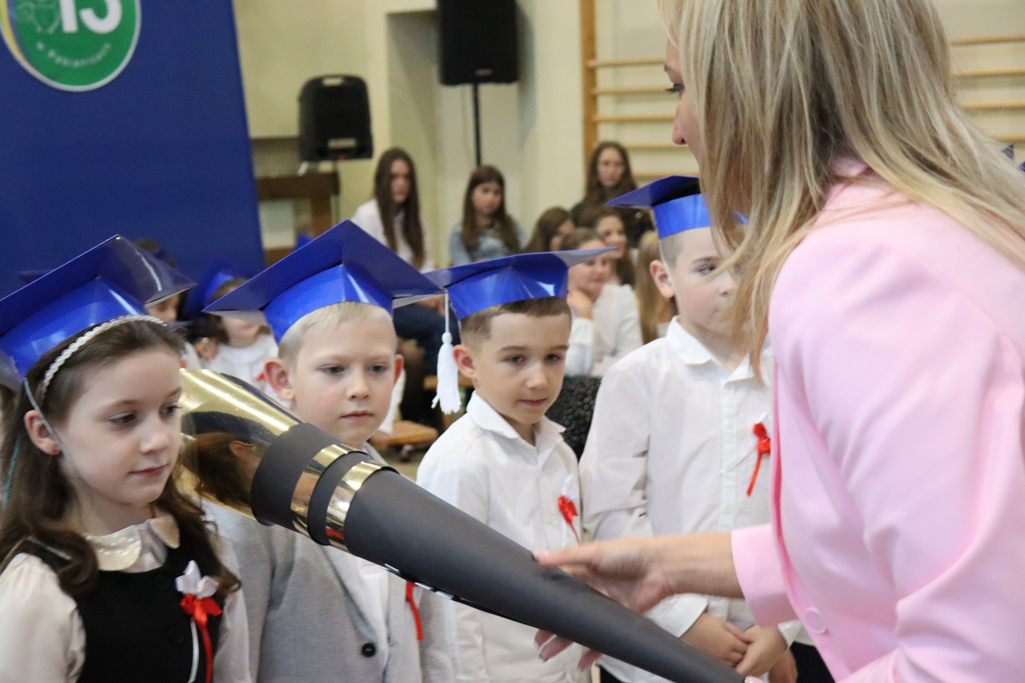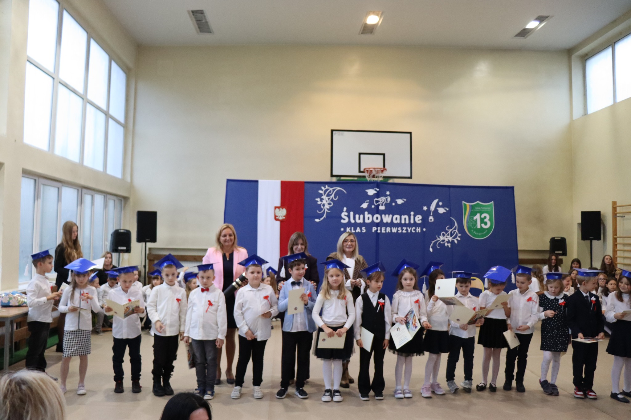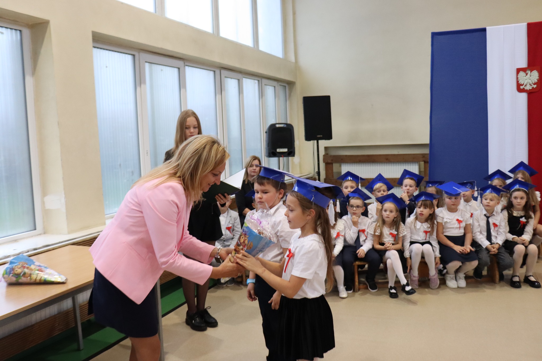 Podczas akademii z ogromną radością powitaliśmy nowych uczniów w gronie szkolnej społeczności. Pani Dyrektor uroczyście pasowała pierwszoklasistów, a każda klasa otrzymała symboliczny róg obfitości ufundowany przez Radę Rodziców. Uczniowie zaprezentowali piękny program artystyczny przygotowany przez wychowawczynie – panią Agnieszkę Jarzębowską i panią Annę Wlazeł. Uroczystość uświetnił występ chóru szkolnego pod kierunkiem pani Doroty Wróblewskiej-Janas.
