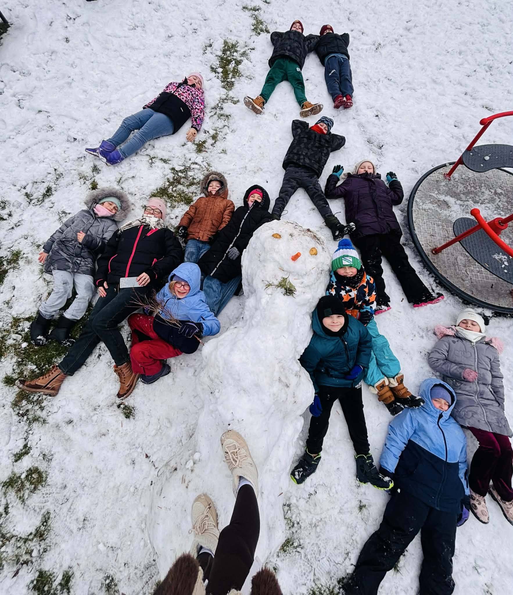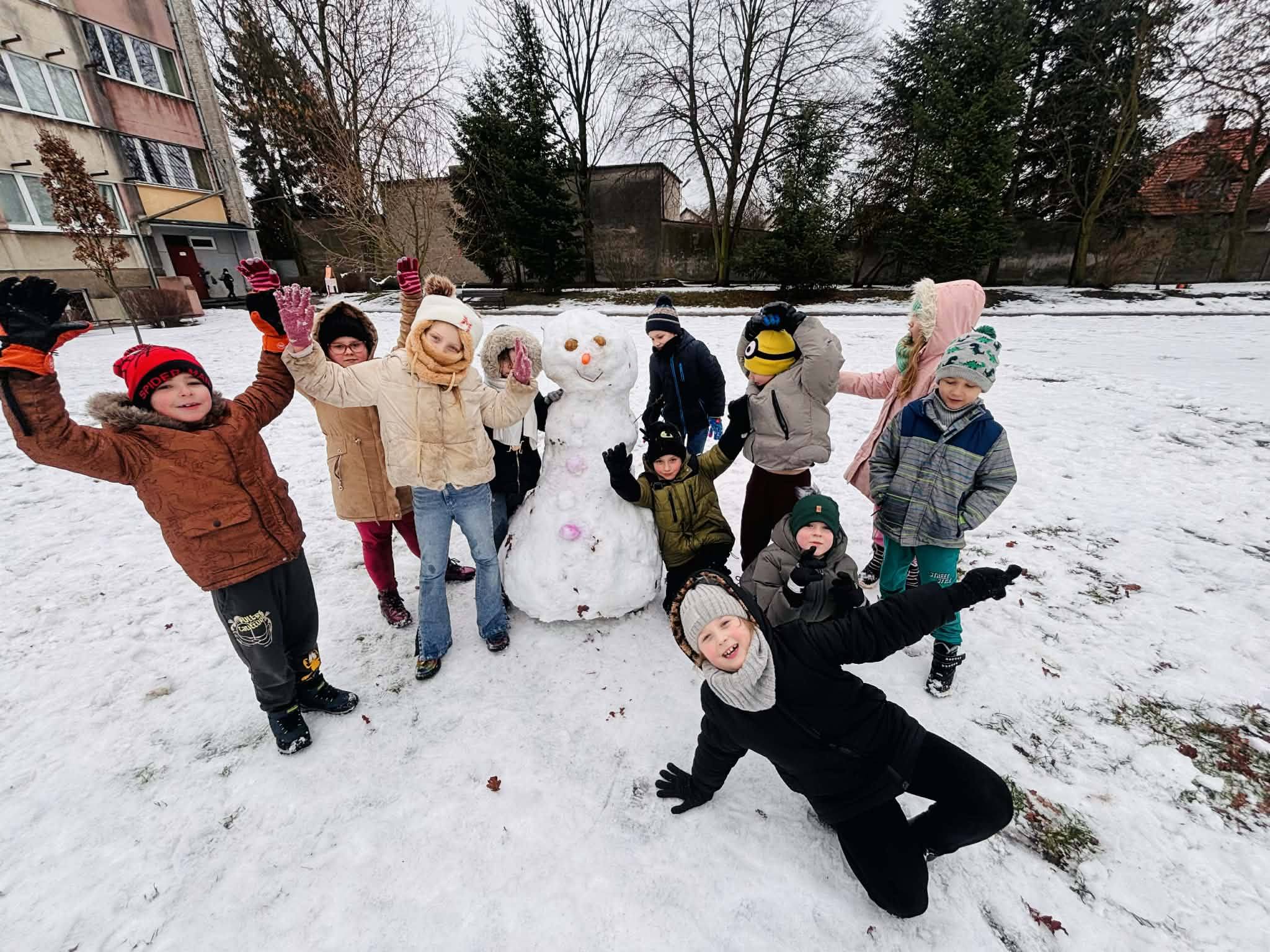 Korzystając z zimowej aury, dzieci spędziły również aktywny czas na świeżym powietrzu. Podczas wyjścia nie zabrakło bitwy na śnieżki, lepienia dużych kul śnieżnych i wspólnego tworzenia bałwanów. Była to doskonała okazja do ruchu i integracji.