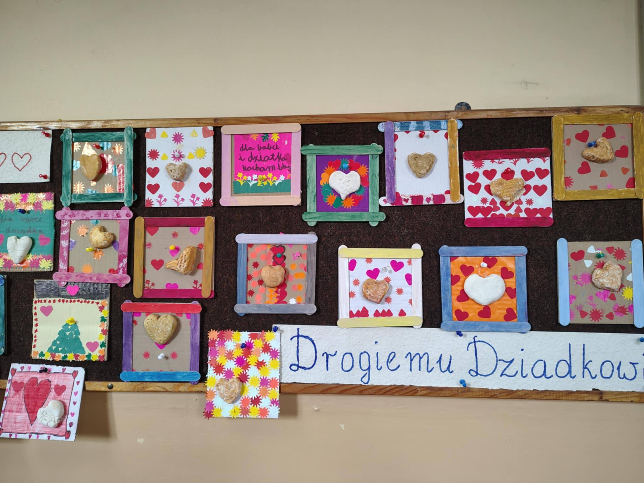 W styczniu nie zabrakło także działań związanych z obchodami Dnia Babci i Dziadka. Dzieci przygotowywały laurki pełne rysunków i życzeń oraz lepiły serca z masy solnej, wkładając w nie wiele zaangażowania i wdzięczności. Podczas zajęć plastycznych powstały również plastelinowe podobizny babć i dziadków, które zostały przeznaczone na okolicznościową wystawę. Zajęcia poprzedzały rozmowy o rodzinie, wspomnieniach i ulubionych potrawach przygotowywanych przez dziadków. Był to czas budowania więzi i wzmacniania rodzinnych wartości.