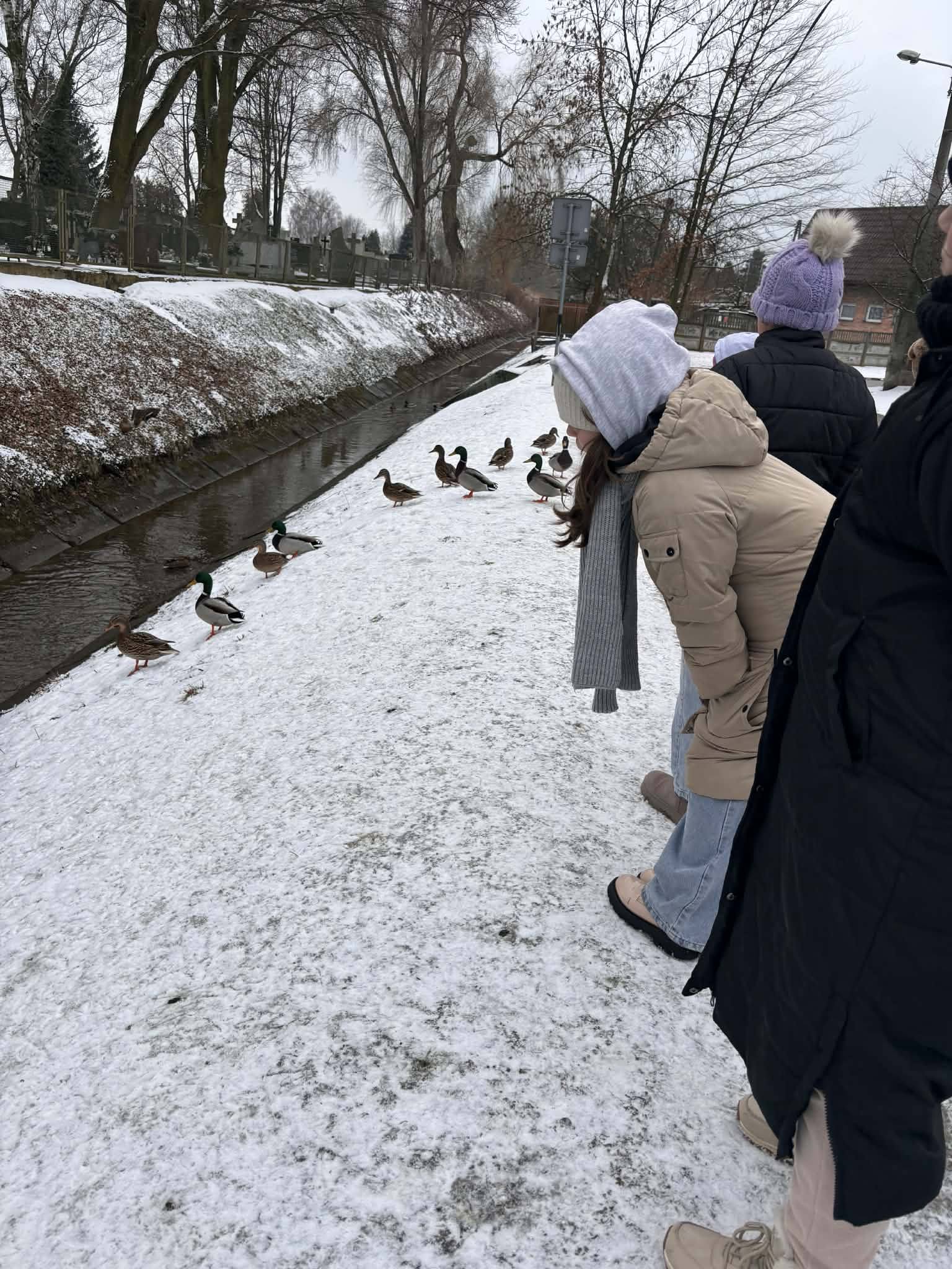 Ostatni tydzień stycznia poświęcony był tematyce przyrodniczej. Rozmawialiśmy o zimujących ptakach i sposobach udzielania im pomocy. Dzieci kolorowały wizerunki sikorek i gili, wykonywały z bibuły karmniki, a następnie – przy wsparciu nauczycieli – tworzyły drewniane karmniki. Zwieńczeniem tygodnia był spacer nad rzekę Pabiankę, podczas którego dzieci dokarmiały kaczki odpowiednimi produktami, wiedząc już, że chleb nie jest dla ptaków właściwym pokarmem.