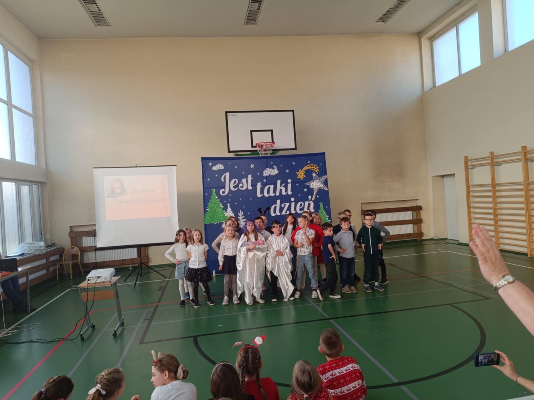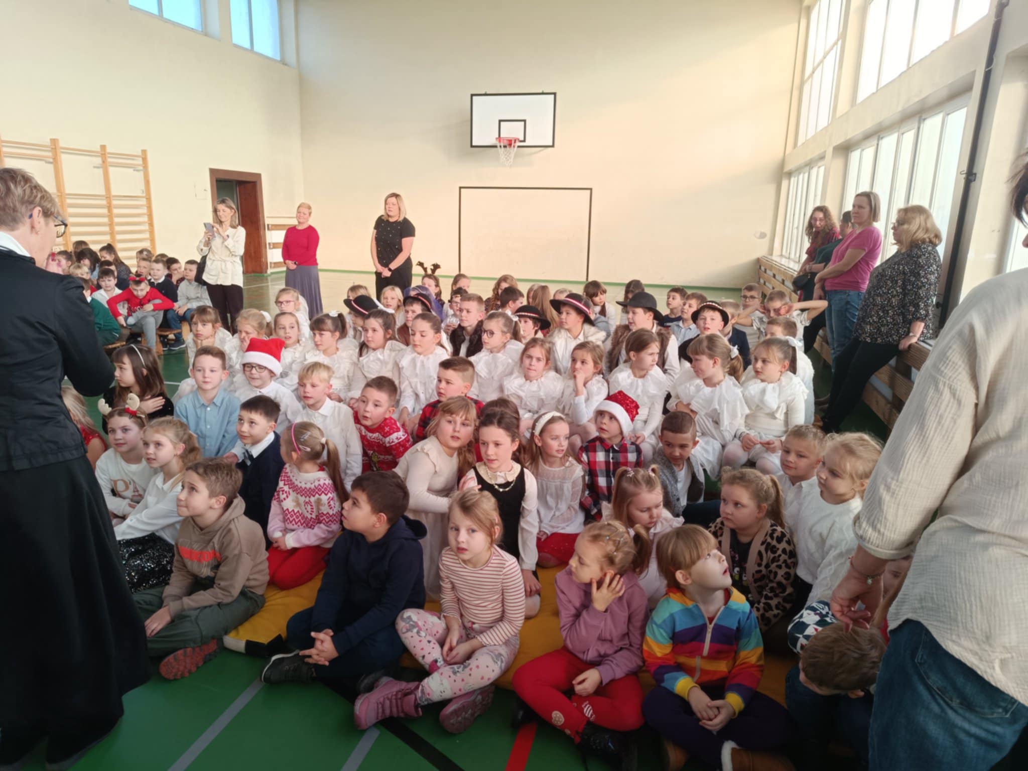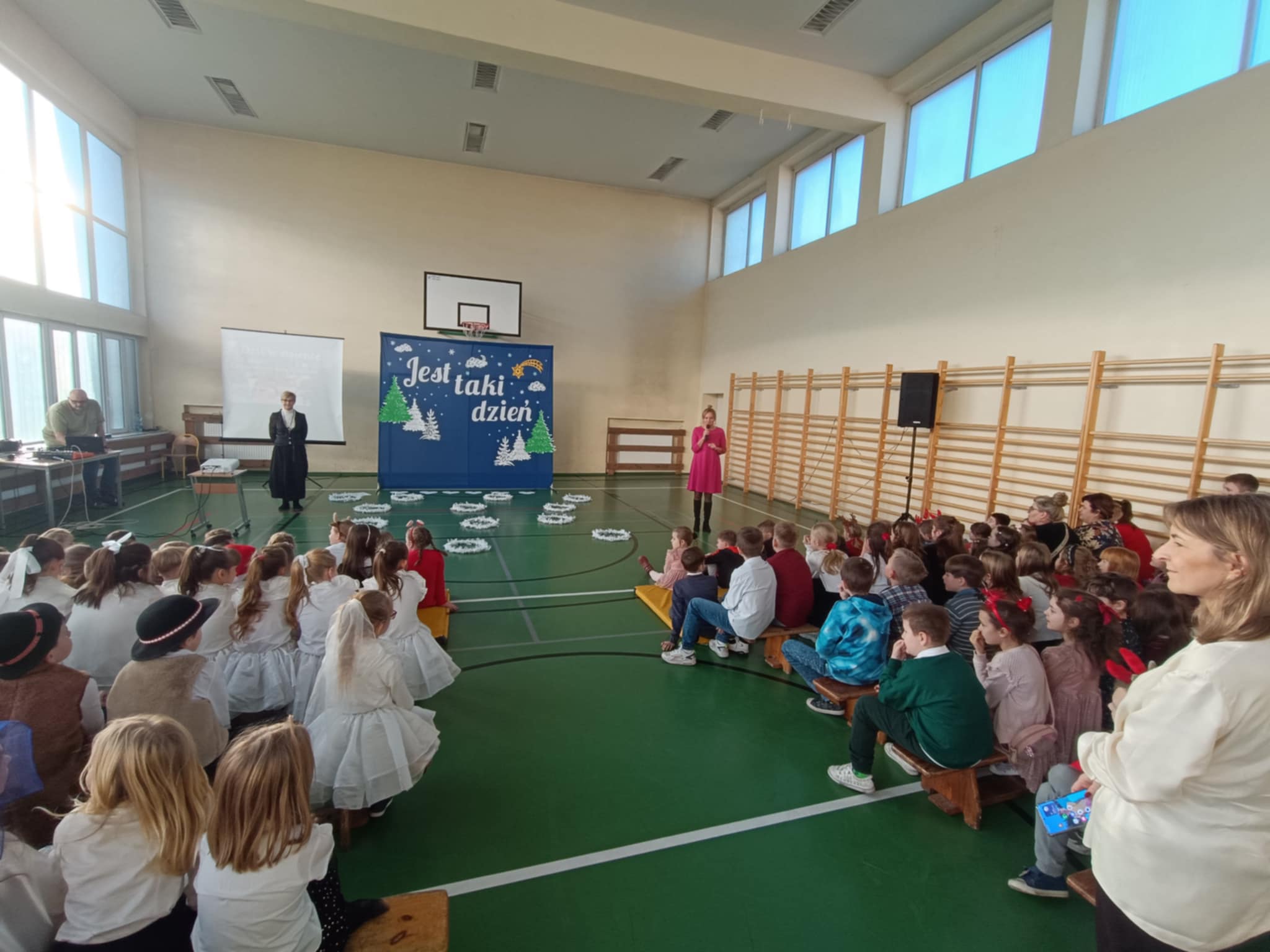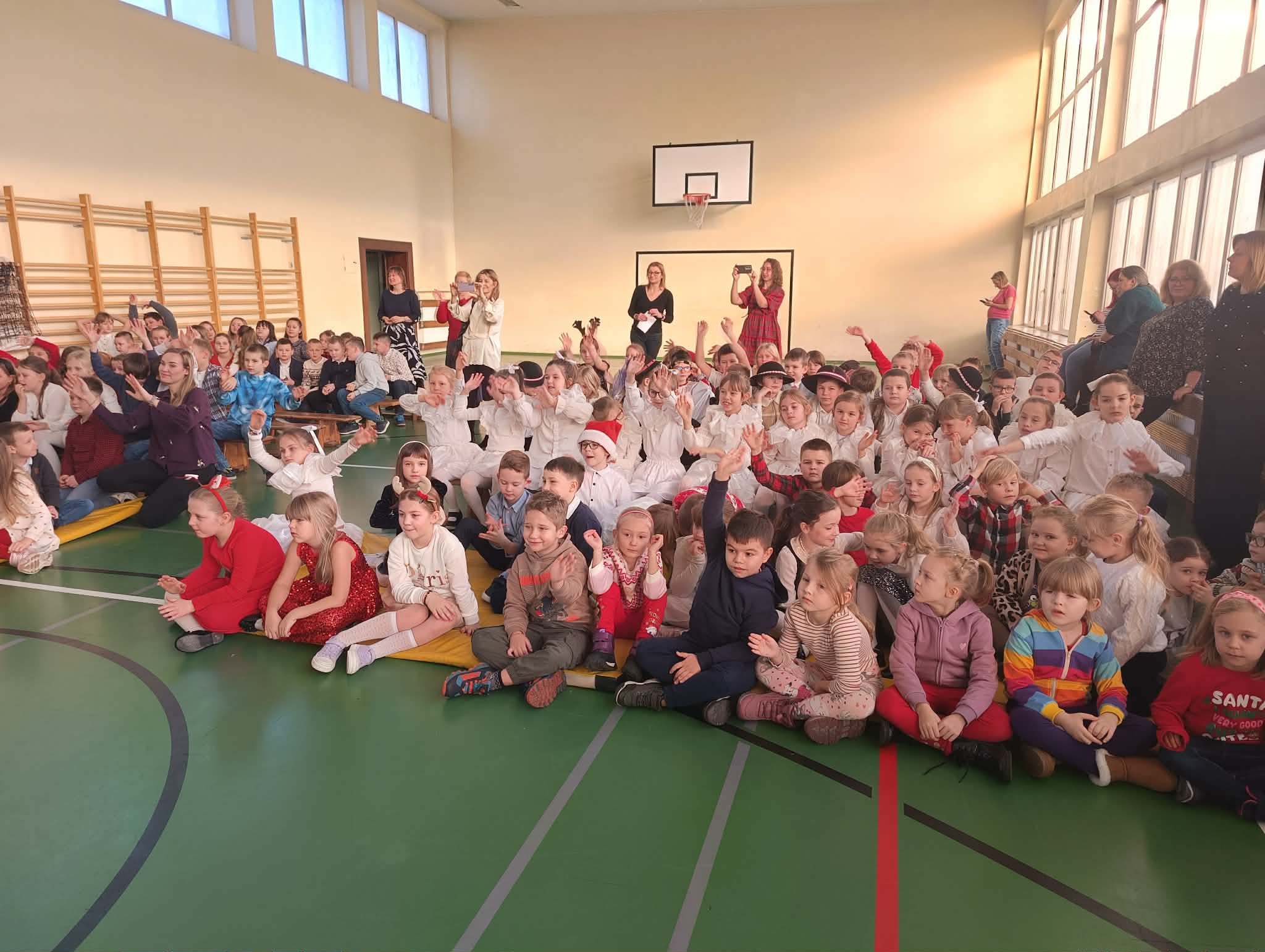 Szczególne brawa należą się dziewczynkom z klasy 2b, które – przygotowane przez panią Monikę Mettler – zachwyciły publiczność efektownymi układami tanecznymi. Ważnym punktem dnia były także szkolne jasełka oraz koncert kolęd i pastorałek w wykonaniu chóru szkolnego, prowadzonego przez panią Dorotę Wróblewską-Janas. Nastrojowe pieśni, połączone z występami uczniów, stworzyły prawdziwie świąteczną atmosferę.