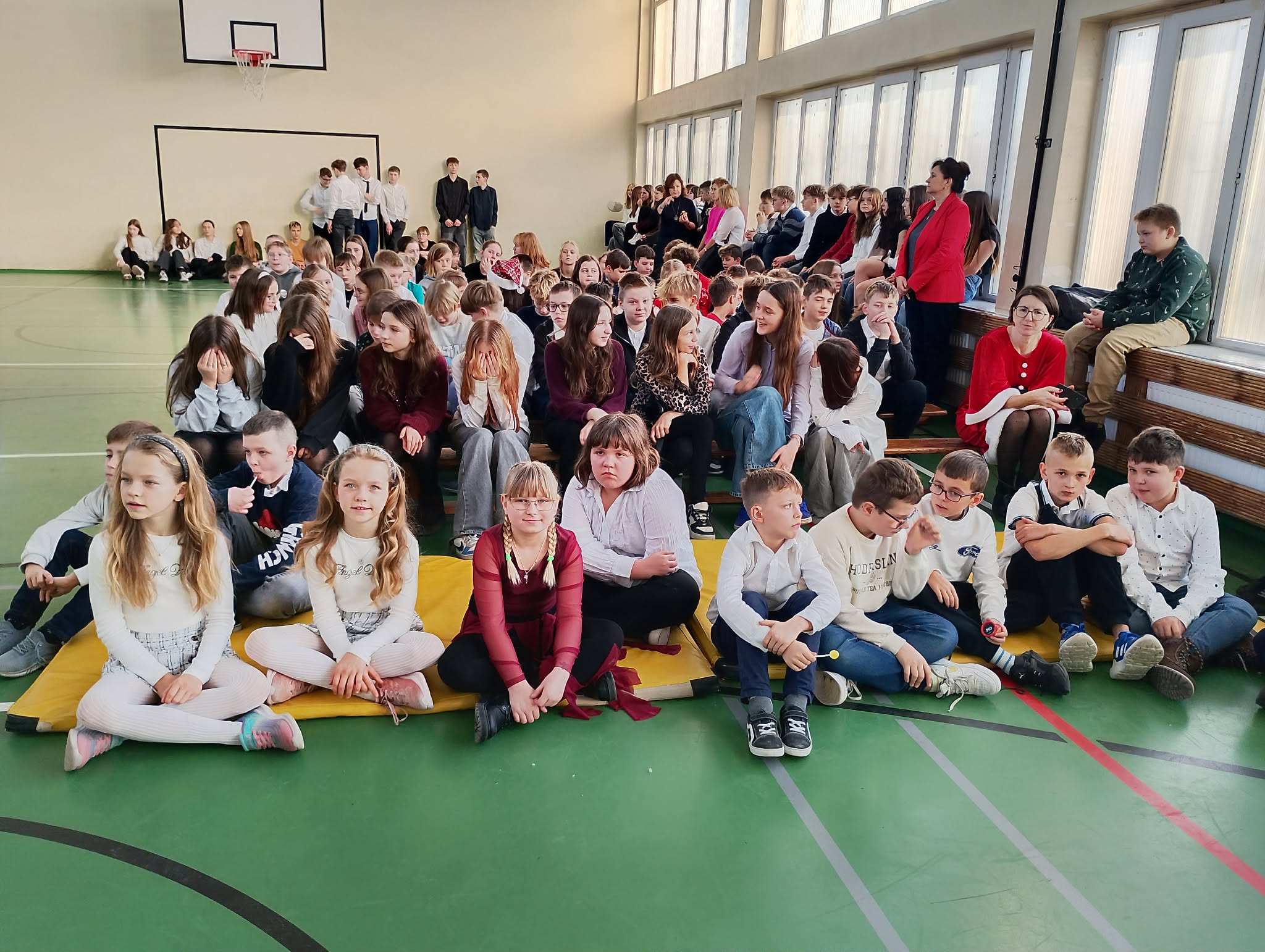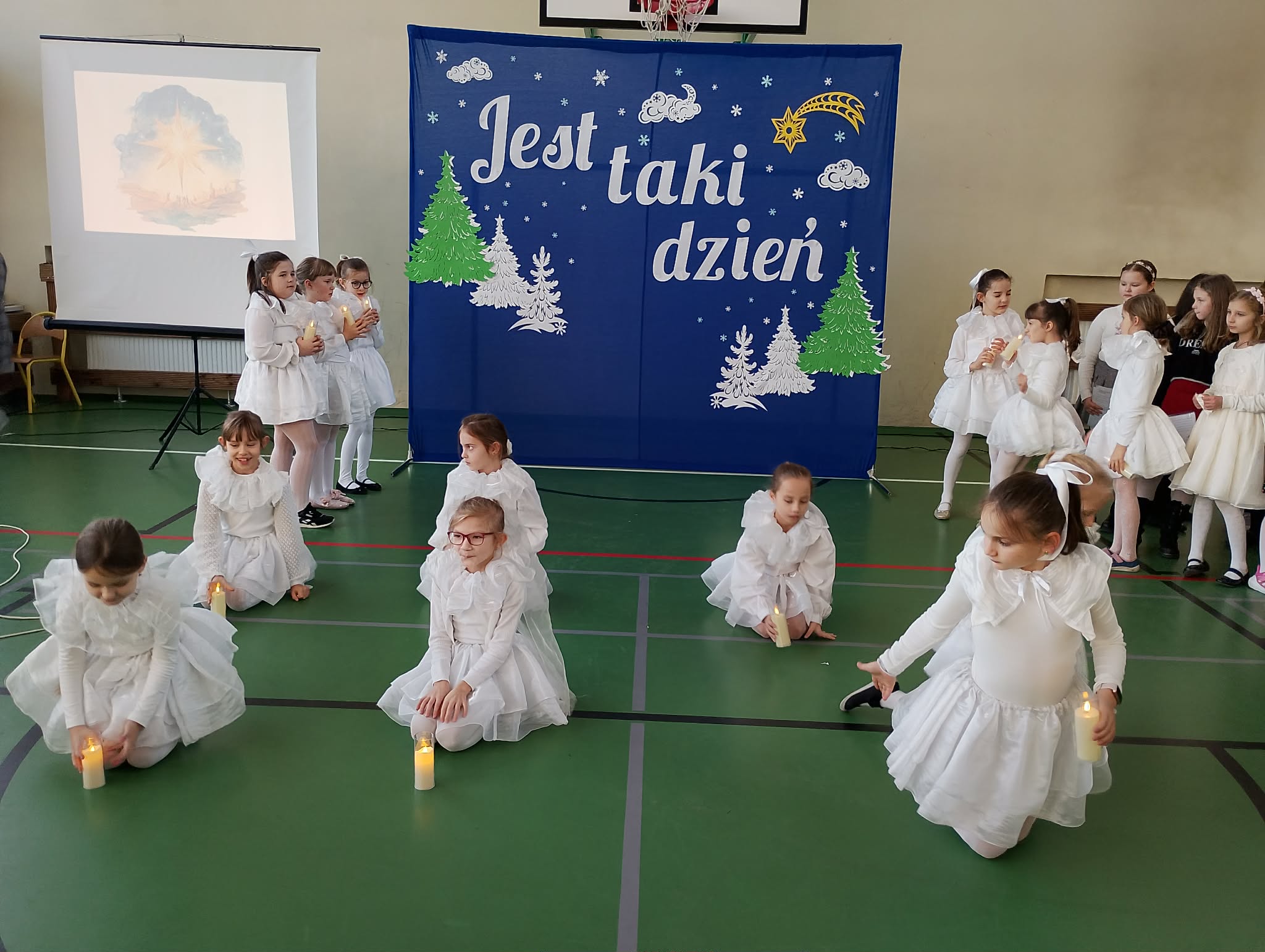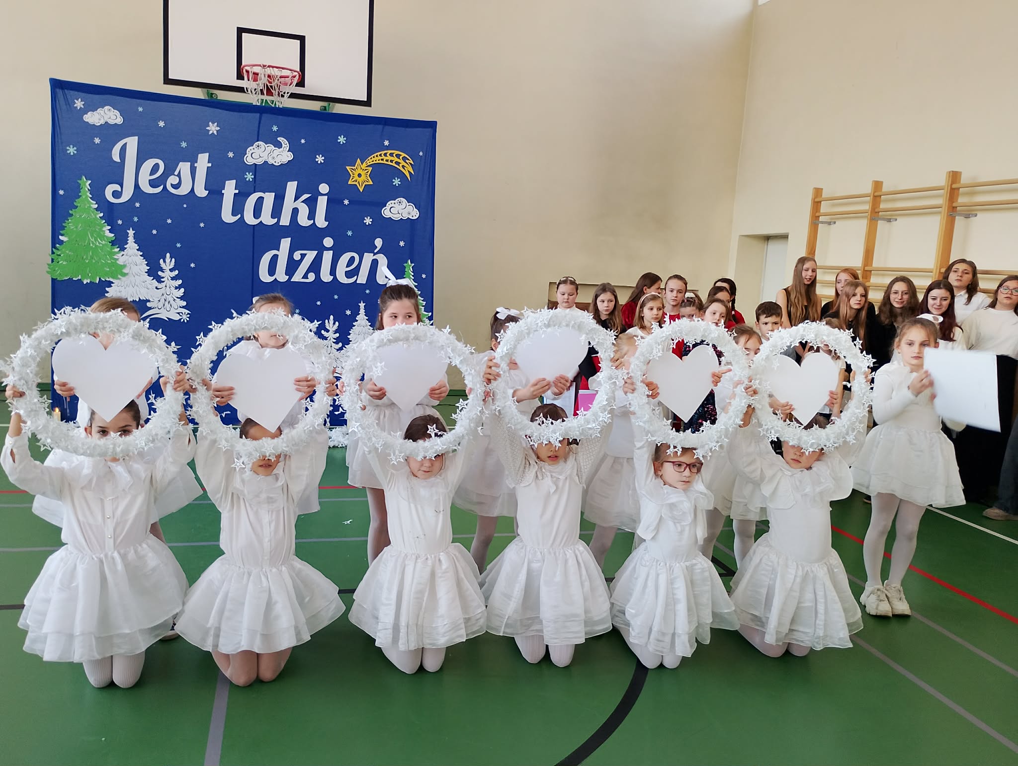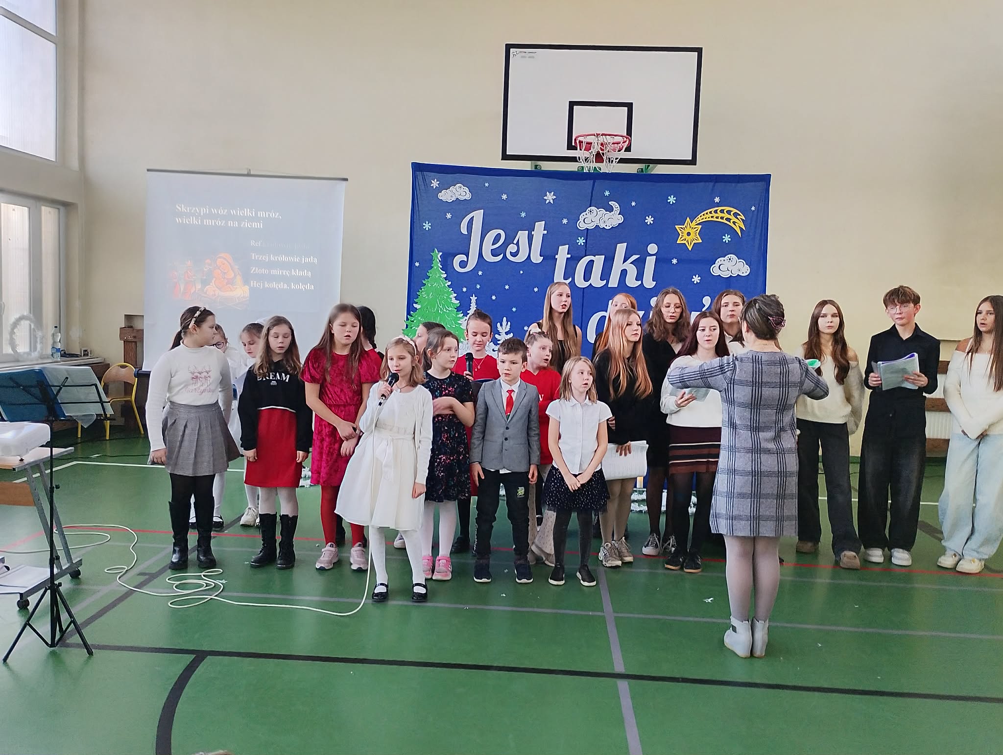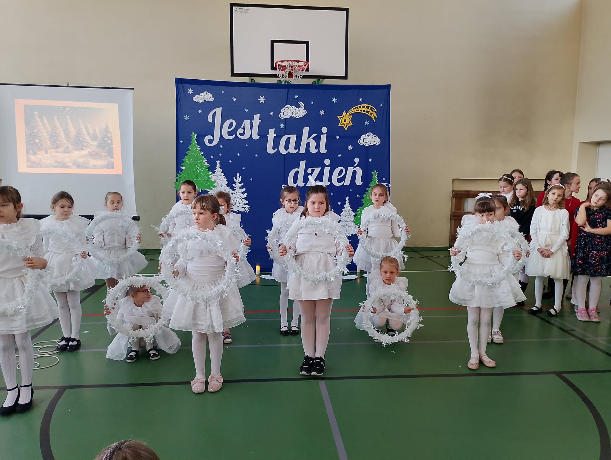 Szczególne brawa należą się dziewczynkom z klasy 2b, które – przygotowane przez panią Monikę Mettler – zachwyciły publiczność efektownymi układami tanecznymi. Ważnym punktem dnia były także szkolne jasełka oraz koncert kolęd i pastorałek w wykonaniu chóru szkolnego, prowadzonego przez panią Dorotę Wróblewską-Janas. Nastrojowe pieśni, połączone z występami uczniów, stworzyły prawdziwie świąteczną atmosferę.