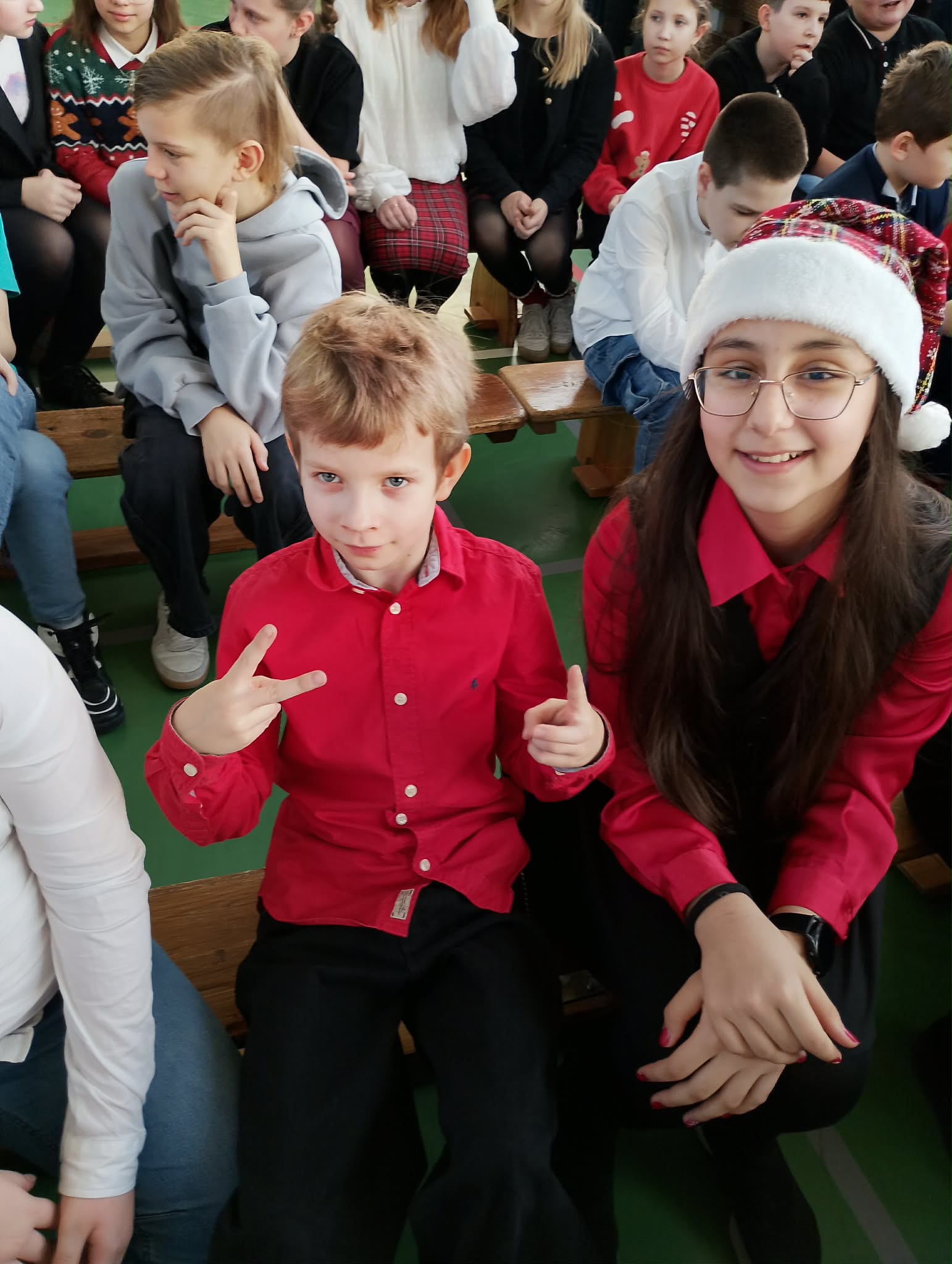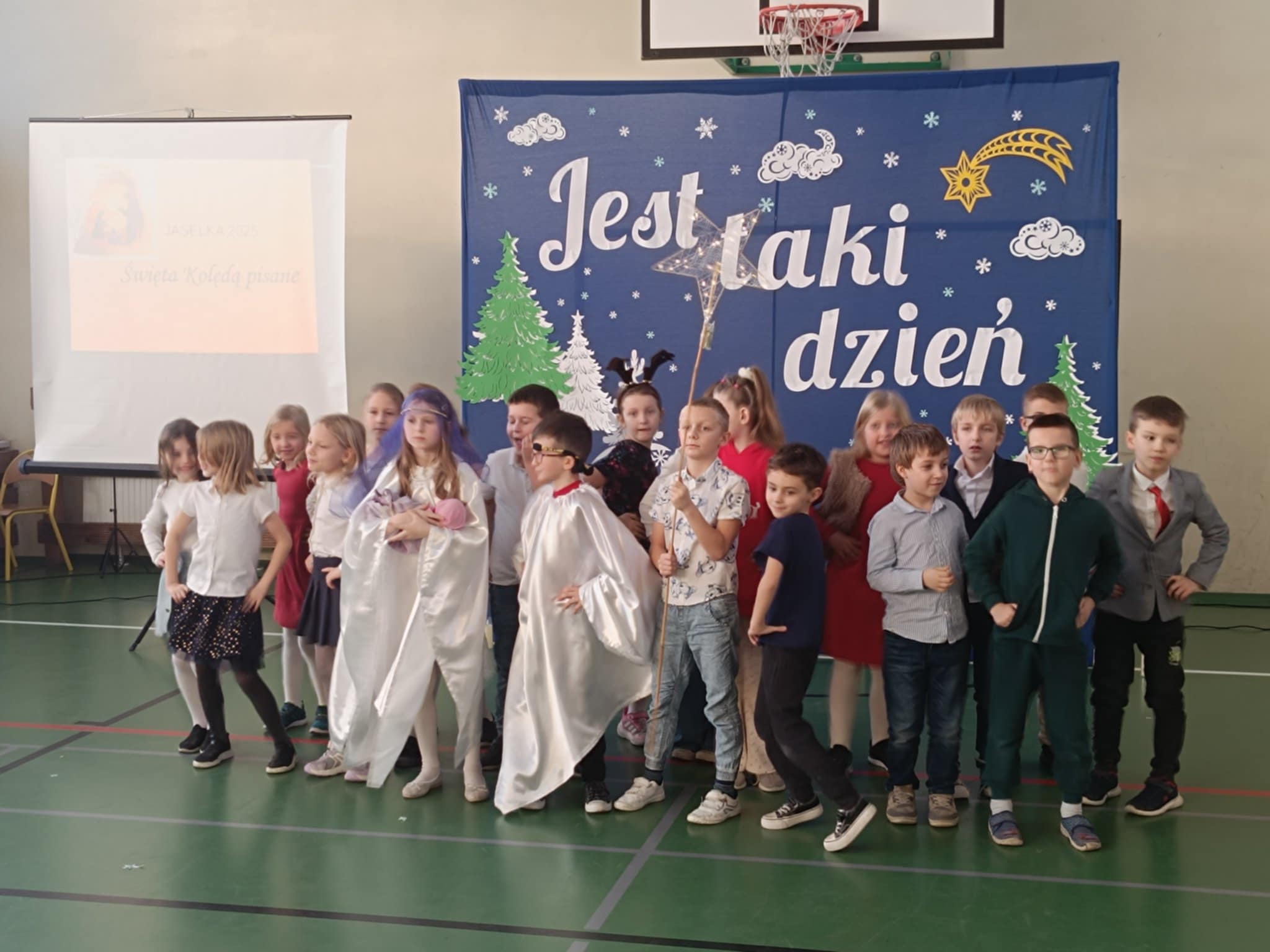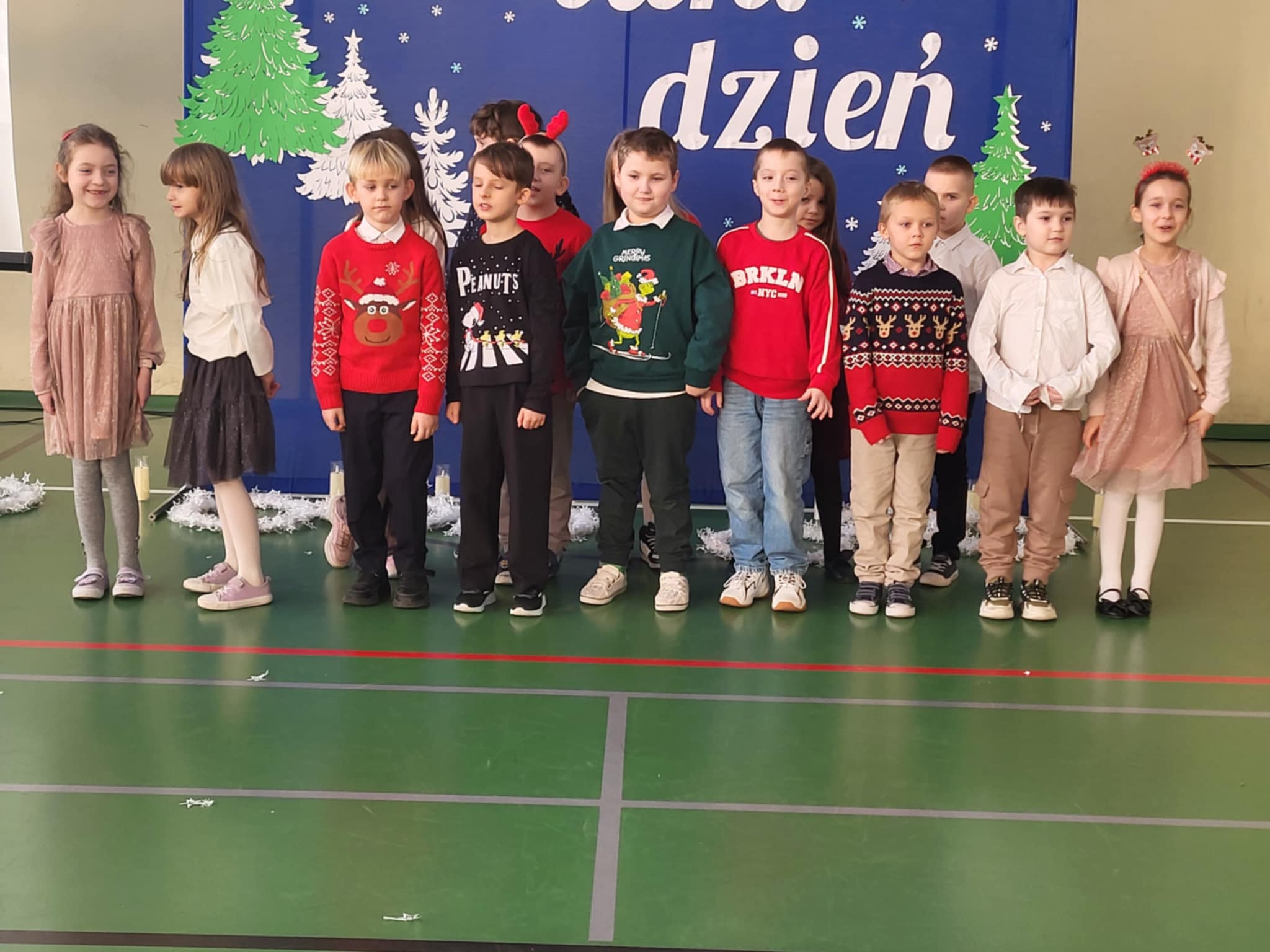 W piątek 19 grudnia nasza szkoła wypełniła się świątecznym ciepłem, radością i wzruszeniem. Wszystkie klasy młodsze spotkały się na wspólnym Koncercie Świątecznym, w którym udział wzięły także dwie grupy sześcioletnich przedszkolaków z Przedszkoli Miejskich nr 2 i 14 – serdecznie dziękujemy za ich obecność. Każda klasa oraz nasi mali goście zaprezentowali utwory świąteczne, wprowadzając wszystkich w wyjątkowy, bożonarodzeniowy nastrój.