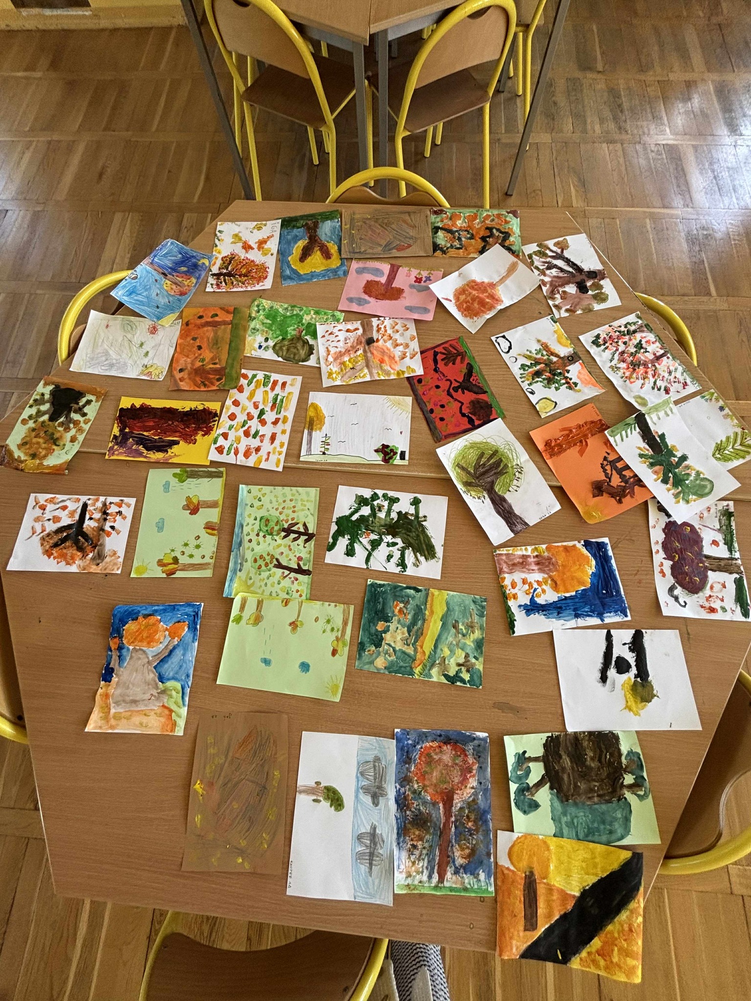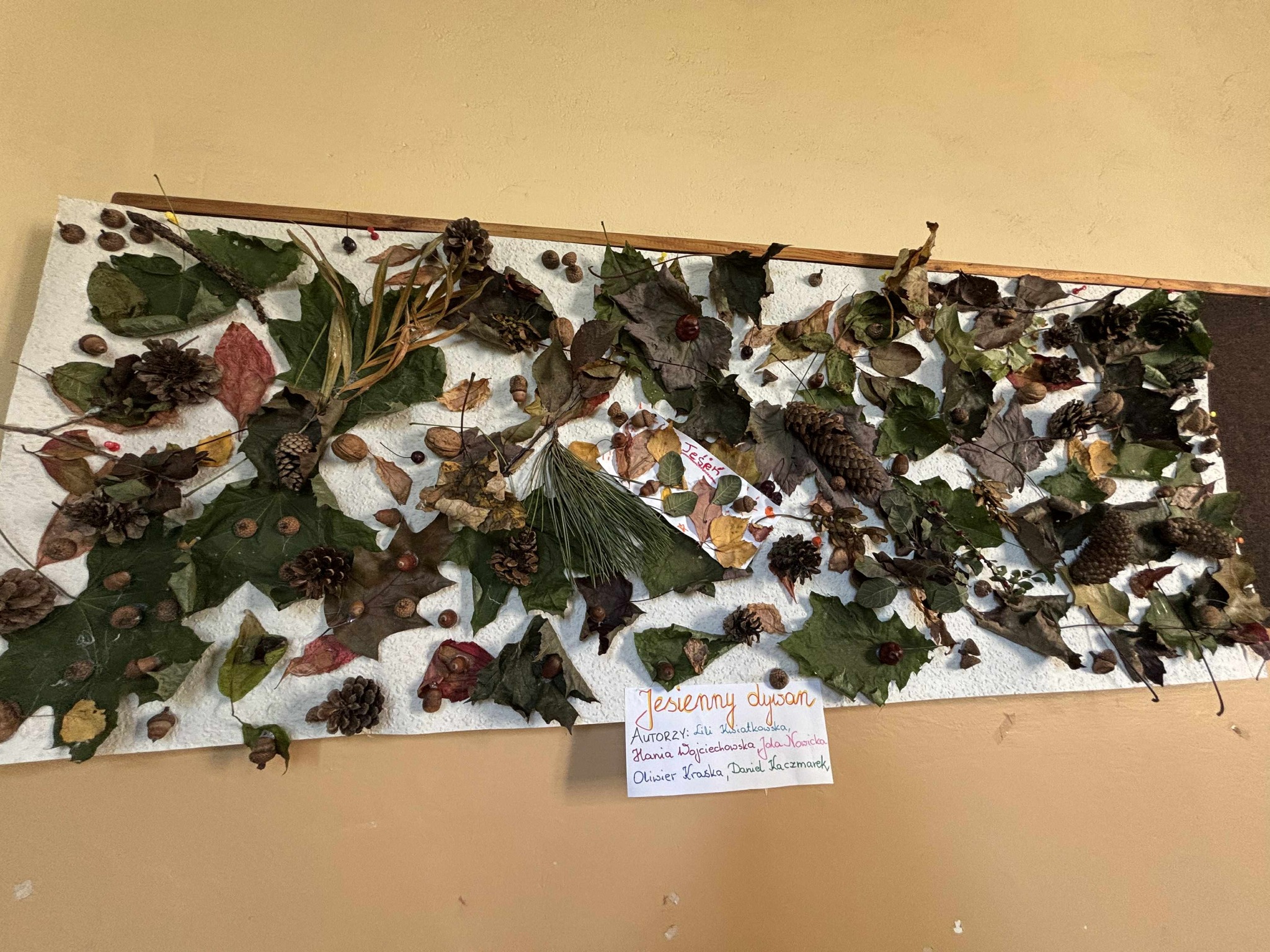 Najpierw tworzyliśmy piękne prace plastyczne inspirowane jesiennymi barwami, a potem wybraliśmy się na spacer w poszukiwaniu darów jesieni– znaleźliśmy kolorowe liście, kasztany i żołędzie.