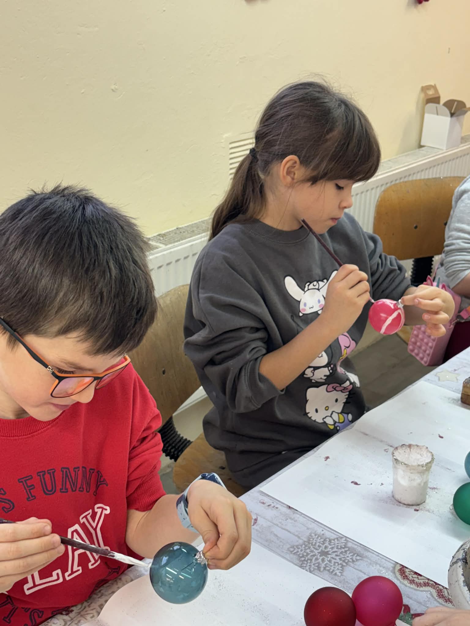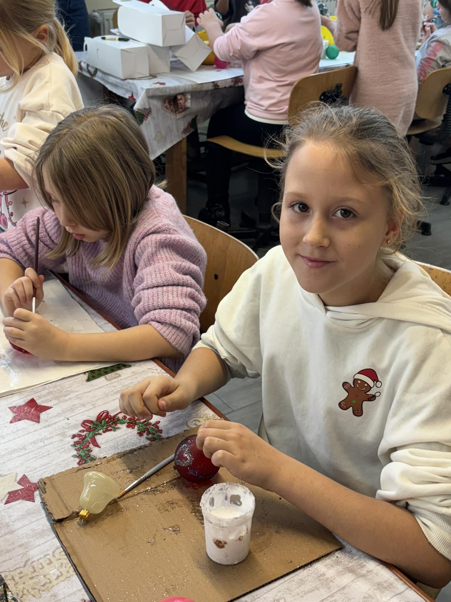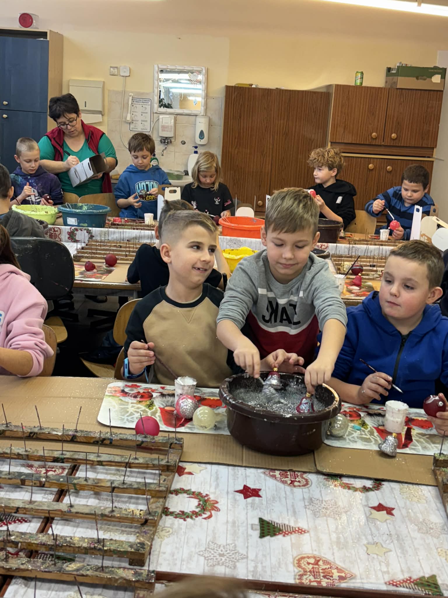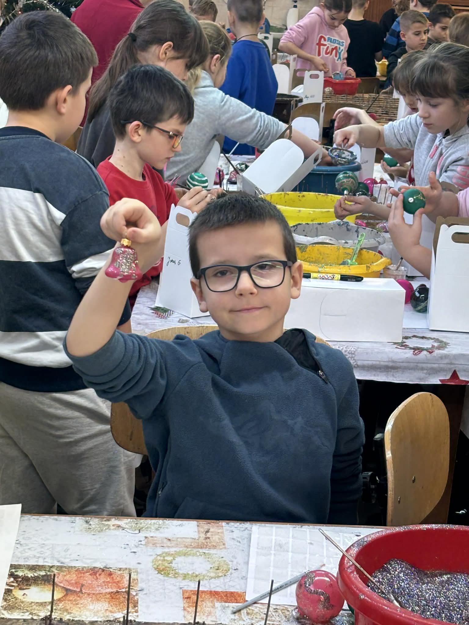 Największą atrakcją było jednak własnoręczne dekorowanie bombek — każdy uczeń stworzył kilka niepowtarzalnych, pięknie zdobionych ozdób.