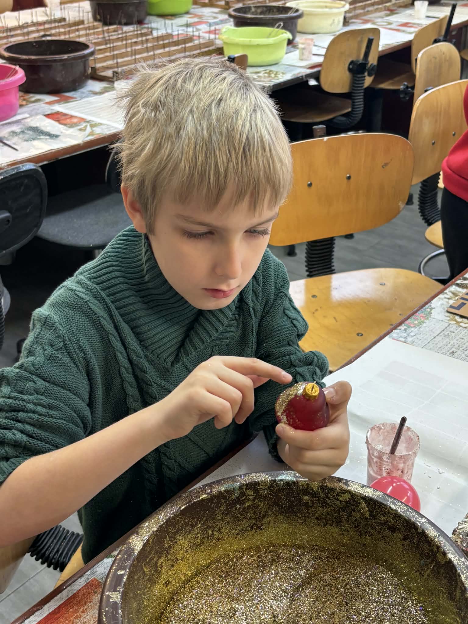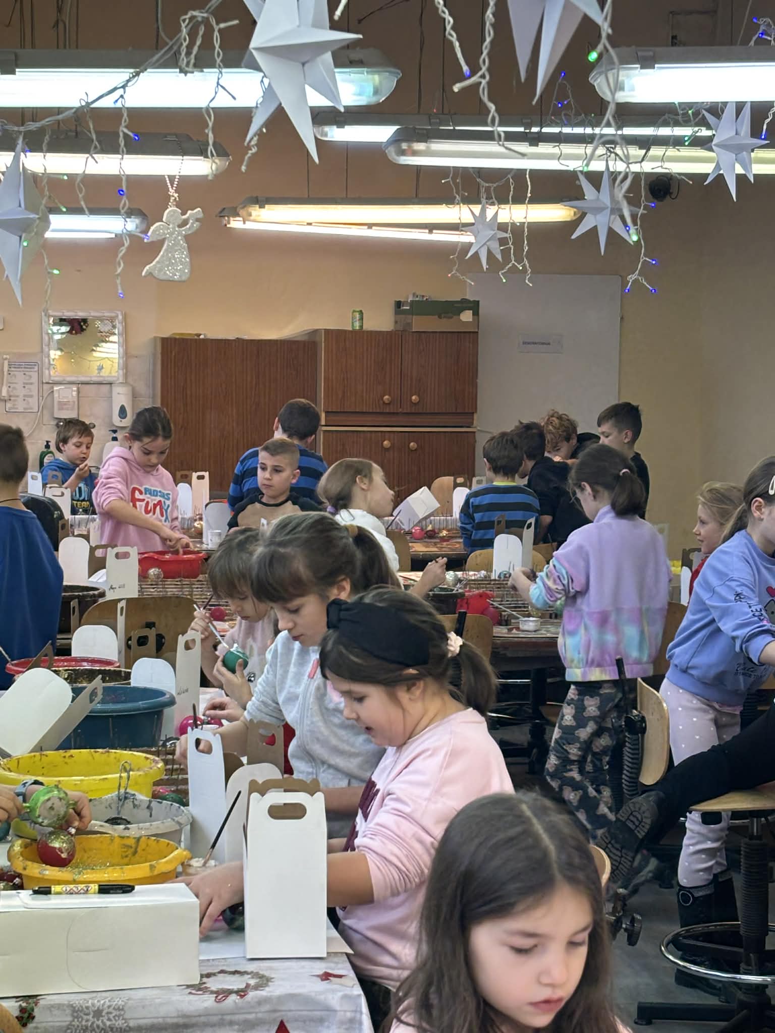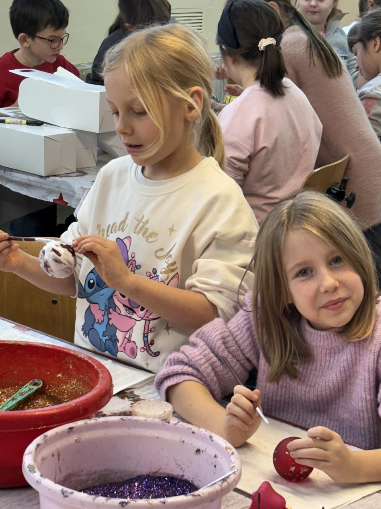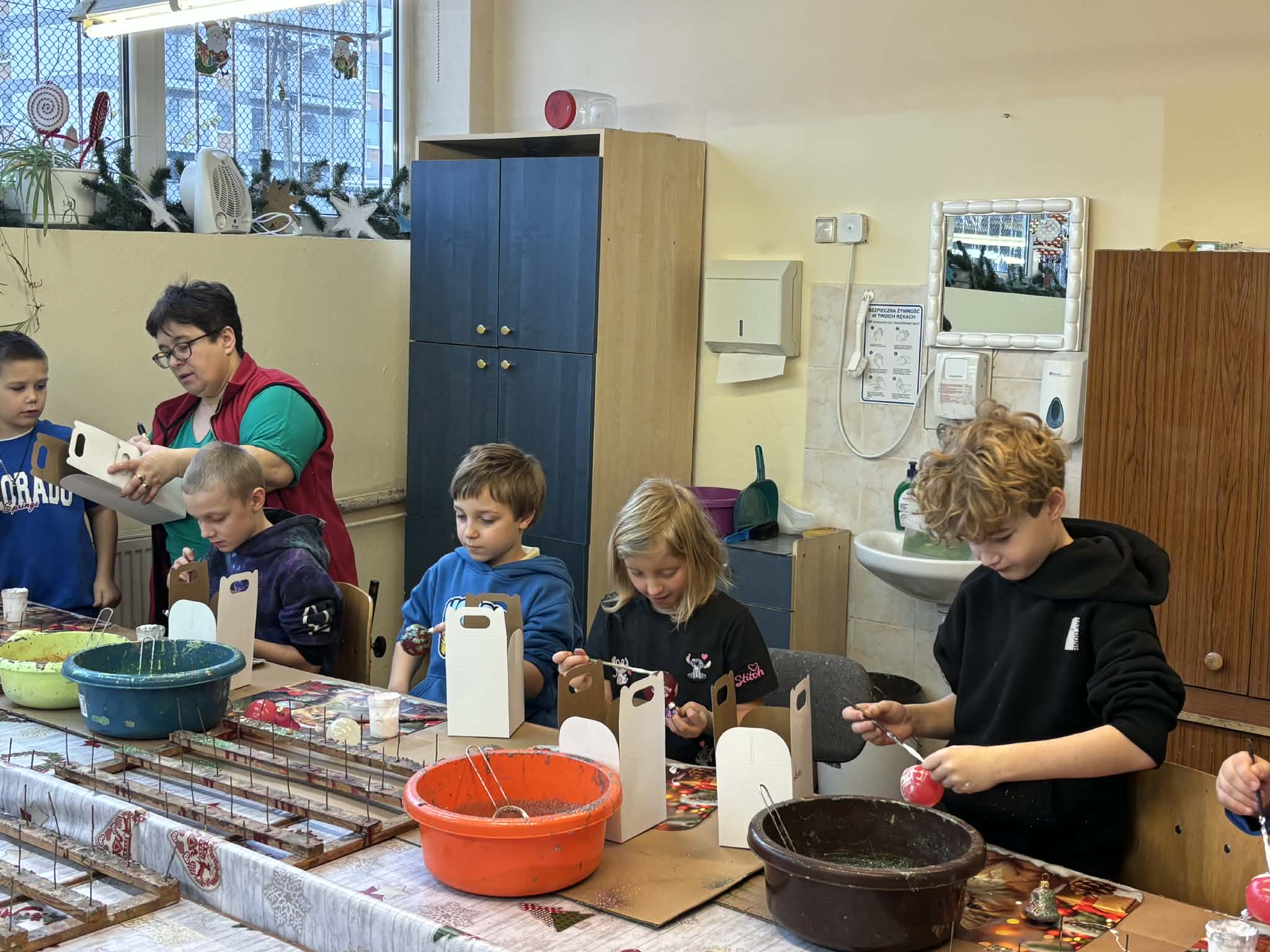 Największą atrakcją było jednak własnoręczne dekorowanie bombek — każdy uczeń stworzył kilka niepowtarzalnych, pięknie zdobionych ozdób.