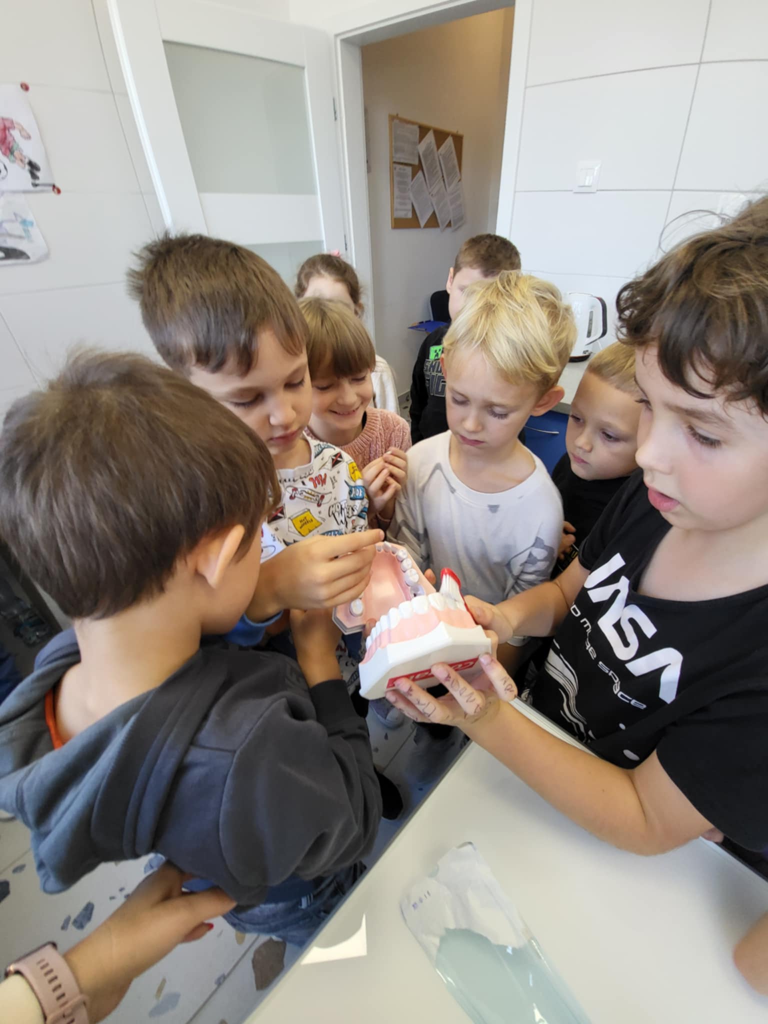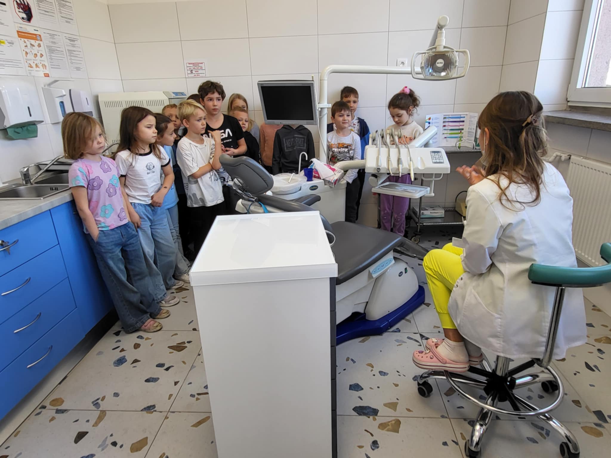W naszej szkole działa nowoczesny gabinet stomatologiczny, który w ostatnich dniach odwiedziły dwie klasy. Uczniowie klasy 1b mieli okazję poznać panią stomatolog i jej asystentkę, które z uśmiechem opowiedziały o swojej pracy. Dzieci obejrzały gabinet, poznały narzędzia dentystyczne i dowiedziały się, jak prawidłowo dbać o zęby. Spotkanie było pełne ciekawostek i praktycznych wskazówek.