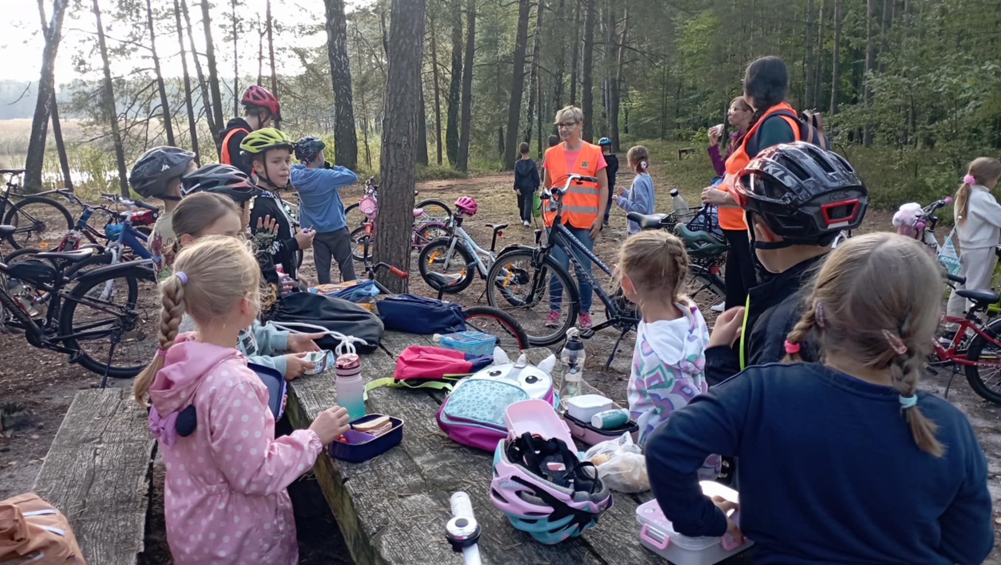 W drodze powrotnej obejrzeliśmy jeszcze nenufary na małym stawie. Szczęśliwie dotarliśmy do szkoły. Wszystkie dzieci zdały egzamin na Super Rowerzystów